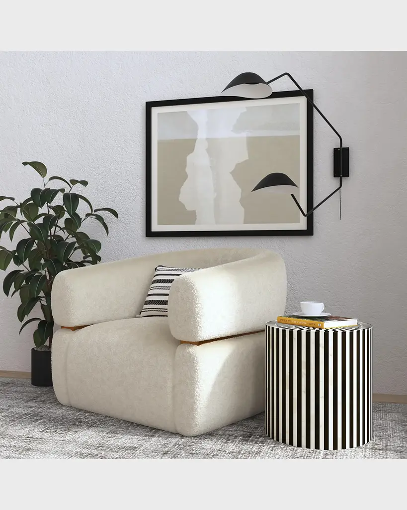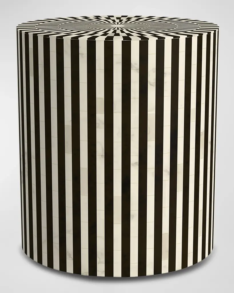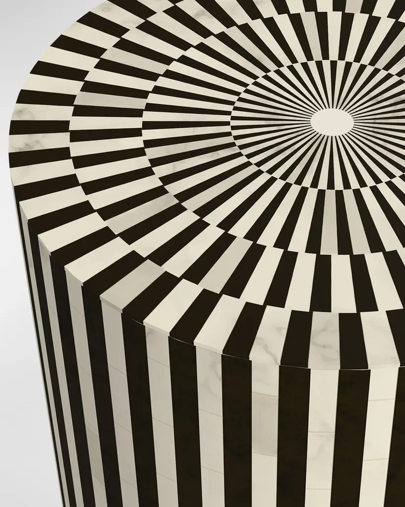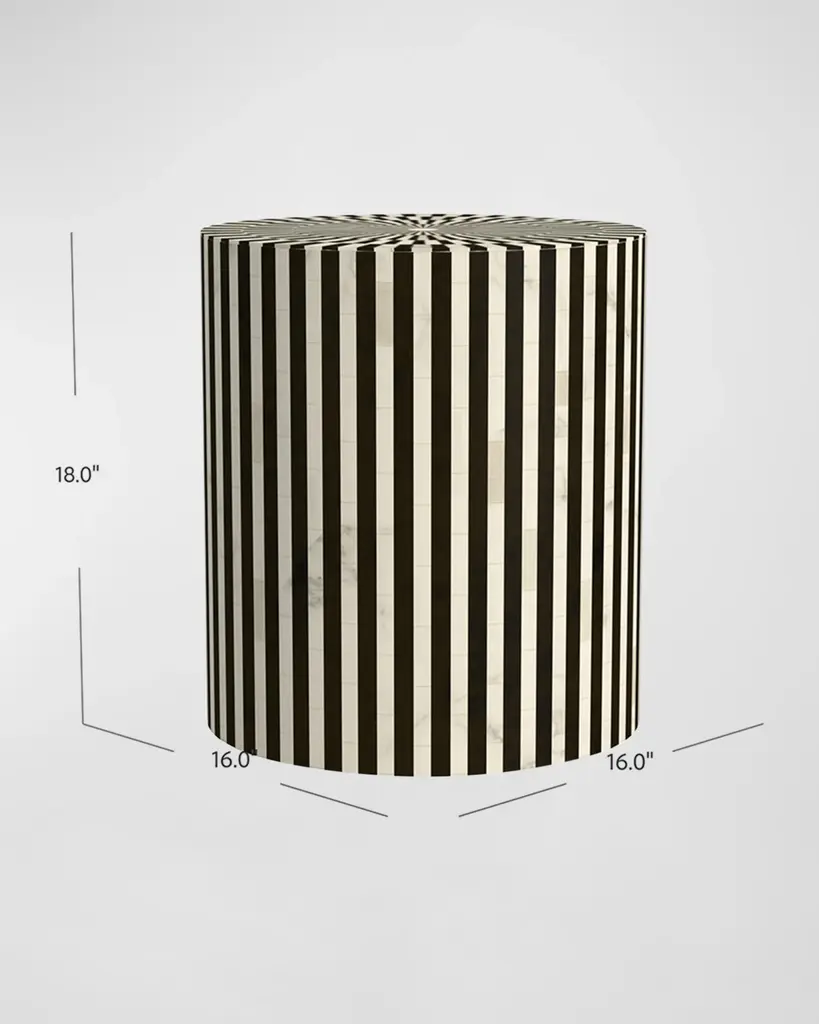 The Teagan Accent Table is round with an alternating pattern of black and white bone. Handcrafted of engineered hardwood and bone Overall, approx. 16"Dia. x 18"T Finished back Weight, 22.0 lbs Imported Boxed weight, approximately 26.0 lbs Shipping Direct from Vendor, usually ships within 80 business days. undefined