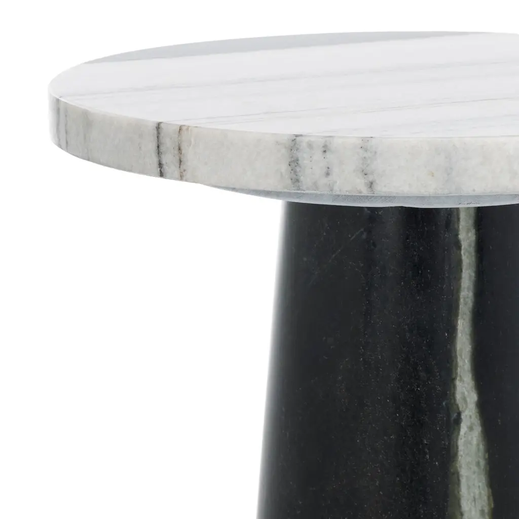 Uplift any corner of your home with the sculptural beauty of the Valentina round accent table. The round profile of the table is juxtaposed against the solidarity and hardiness of marble. Crafted entirely in real marble, the table stands upon a refined and sculptural pedestal. Both alluring and visually dynamic, our accent table celebrates the natural veining and tonal variations of marble. It can serve as a sleek and stylish accent to complement your cocktail hours or beautifully display your favorite decor items.