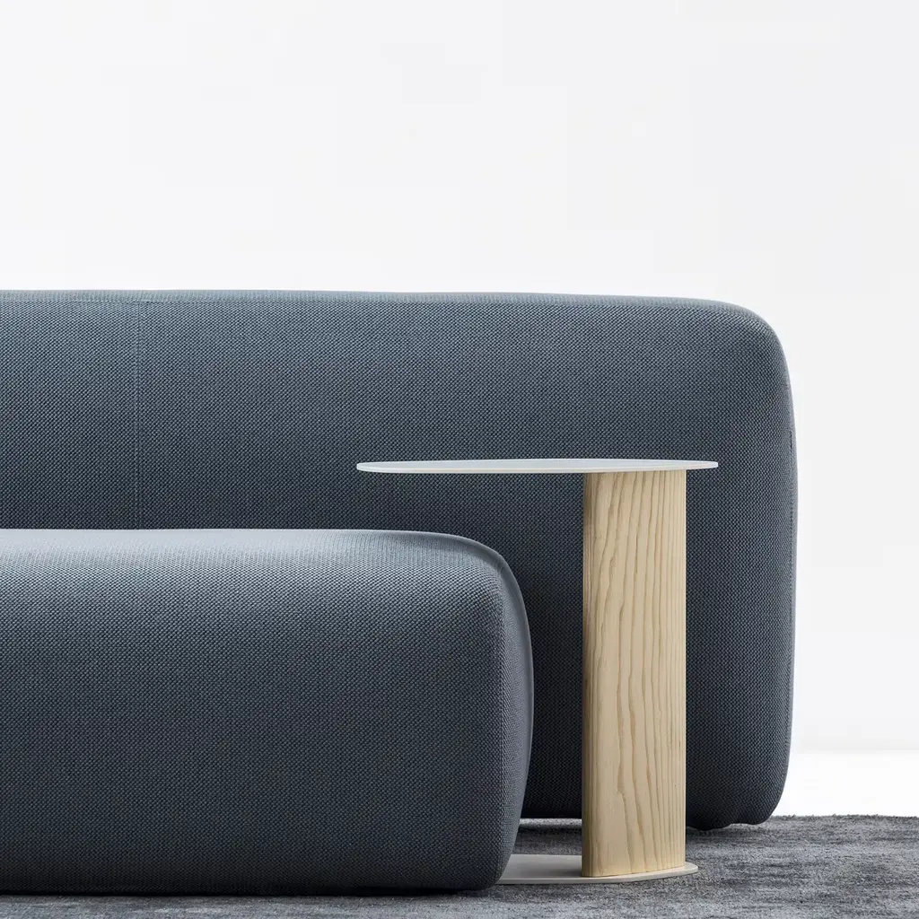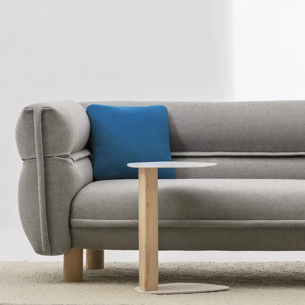 Ideal for both contract and private spaces, this side table is a perfect complement to all La Cividina seating, particularly the modular series Suiseki. Its organic shape is inspired by the stones shaped by water and wind that become sculptural silhouettes. The base and top are in white-varnished steel, while the off-center column that links them is in natural ash.