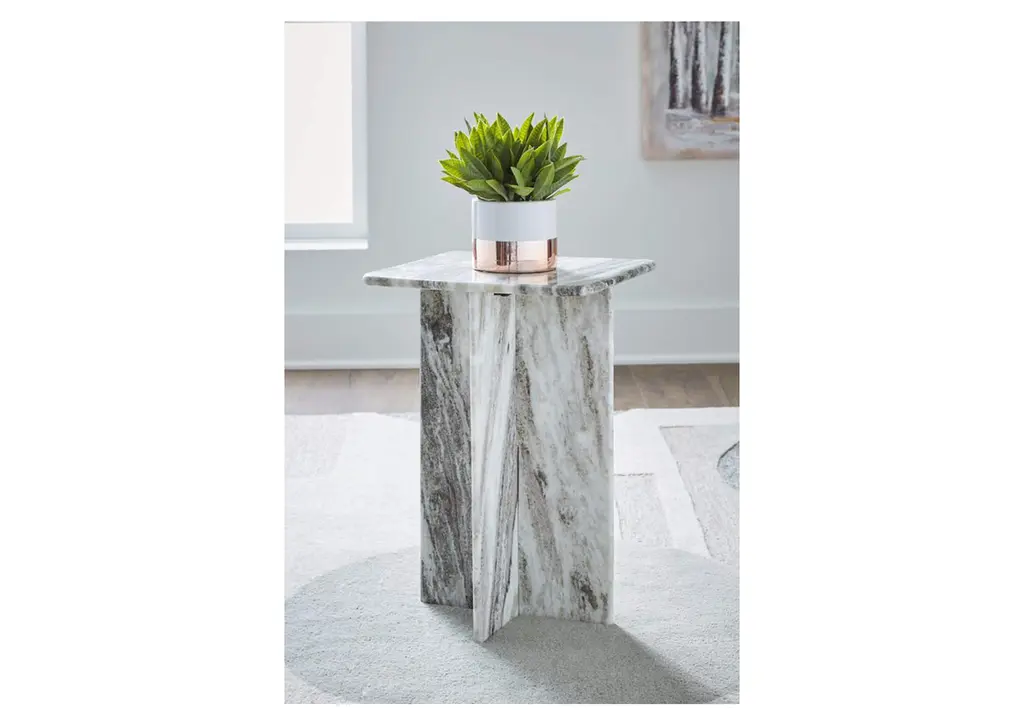 Style to aspire to. The Keithwell accent table appeals to your eye for artisanal design at an affordable price. The all-marble construction makes it a sculptural addition to your curated space. Whether this table is standing alone or with decor on its smooth top, the beauty of natural stone makes a stunning impression. Weight 54.000 lbs. (24.3kgs.)