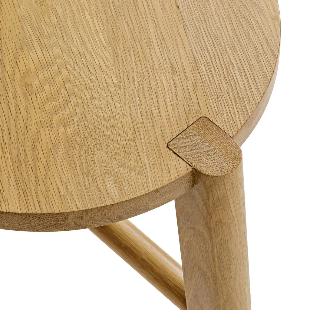 European inspired farmhouse side table crafted from solid oak and rubberwood, in a light, modern finish.