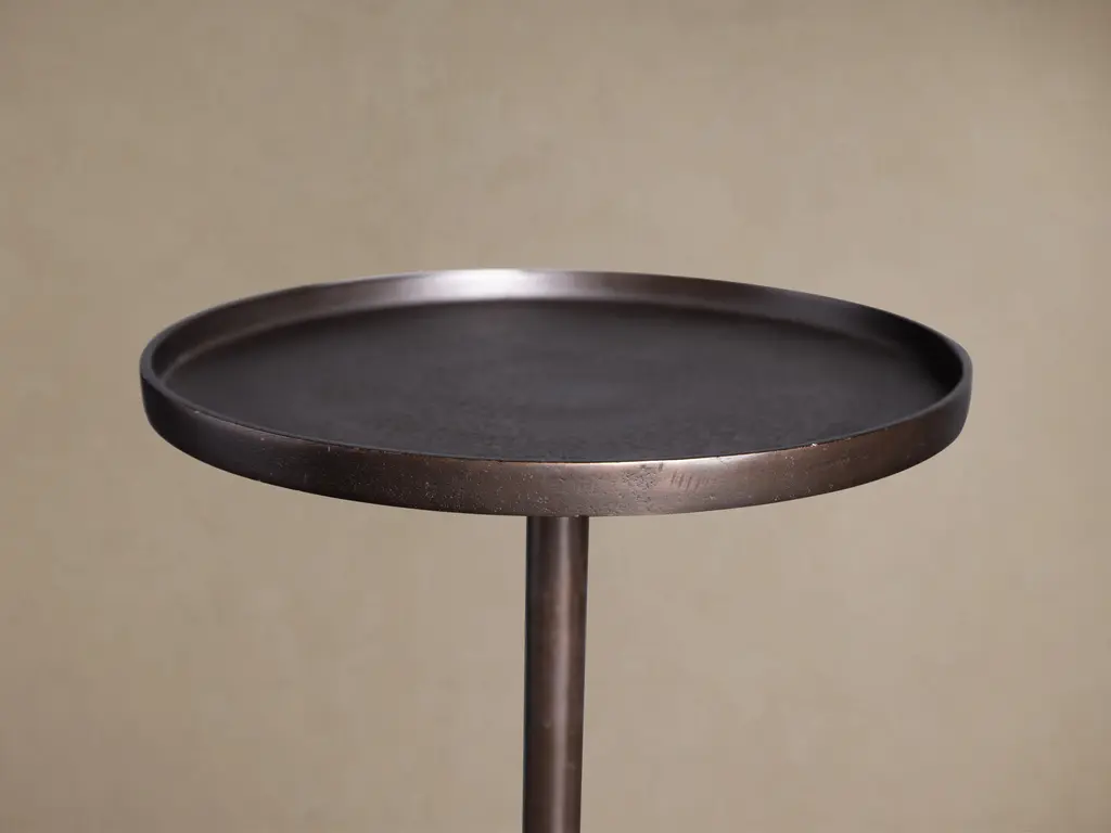 Handcrafted by metal artisans in India from cast aluminum, our Kenneth Martini Table Collection features a uniquely hand-antiqued and polished surface. Elegantly rustic patinas in varying shades and patterns make each minimalist table a true one-of-a-kind.