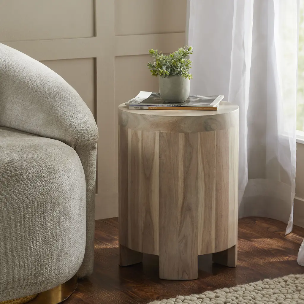 Above and beyond a side table reserved strictly for function, this piece acts as a work of art in the home. The white-washed acacia wood pairs equally well with contrasting minimalist pieces as it does with organic-inspired accessories. This wood side table can be set in a living room or entryway, standing solitary or acting as a resting place for everyday objects, plants, or picture frames.