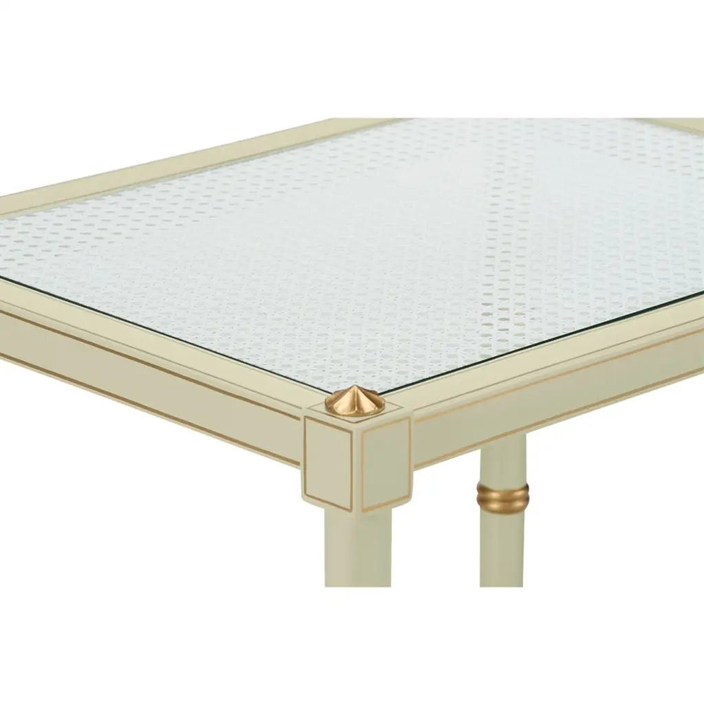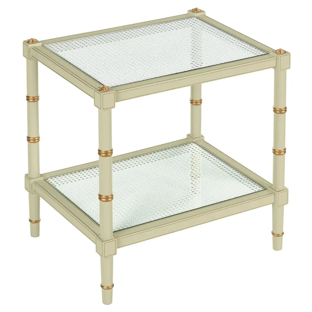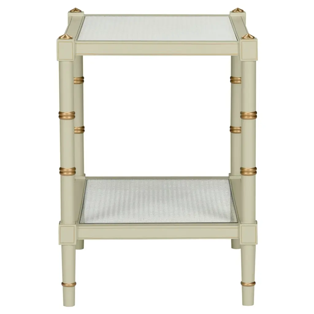 Keshia Coastal Beach Green Wood Natural Woven Cane Rectangular End Table