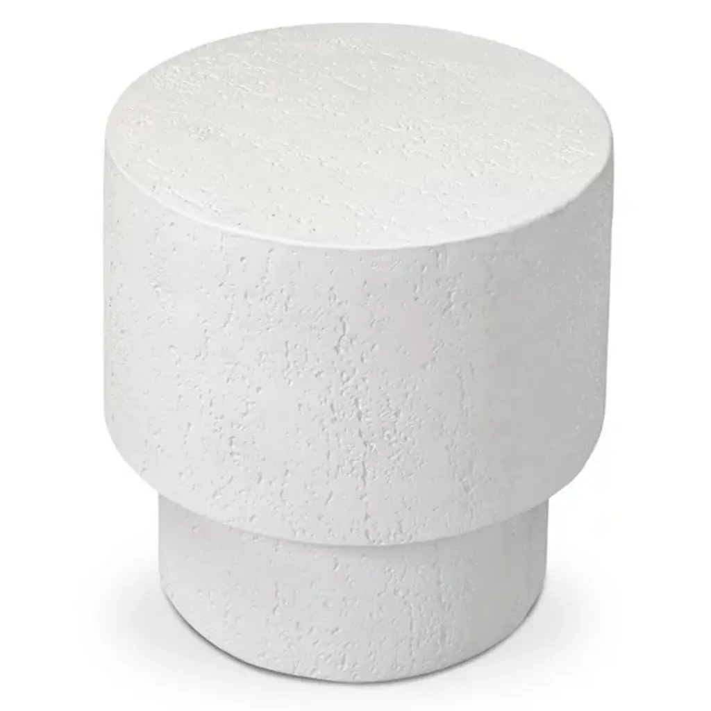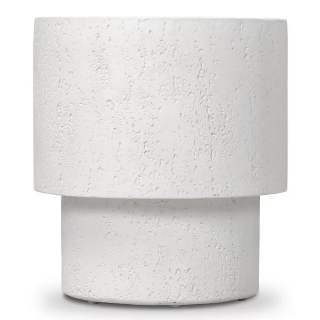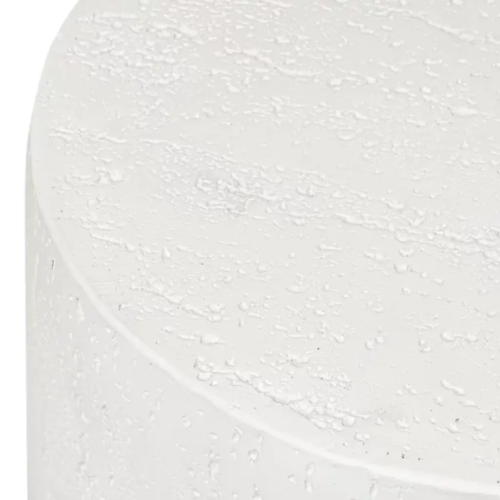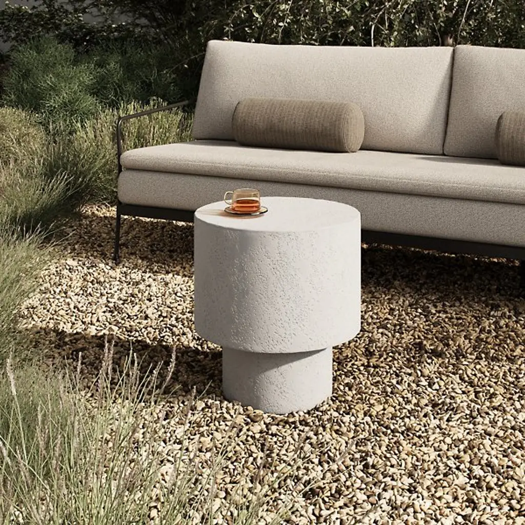 The Kesia Outdoor End Table from Four Hands uses a plinth-style design that puts all focus on the concrete's highly textured surface. The simple cylindrical shape lets the concrete's natural variations speak for themselves, with each piece showing unique patterns from the casting process. This approach creates an end table that feels more like sculpture than furniture, adding artistic presence to your outdoor space. The substantial weight keeps it stable in windy conditions, while the textured finish helps hide any marks or wear that develop from regular outdoor use.