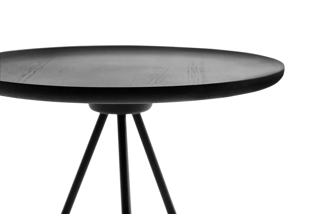 The top of the Key Table is turned solid ash or walnut. The simple pleasure of the wood grain, visible even in the black and white lacquered versions, is fundamental to this design. Delicate tripod legs support the tabletop, creating a feeling of airiness and modernity. The Key Table is both light and strong; it is shipped flat-pack and requires minimal effort for assembly (the tripod legs screw smoothly and efficiently into the top). This timeless design from studio GamFratesi suits any interior and works well alone or in a cluster.