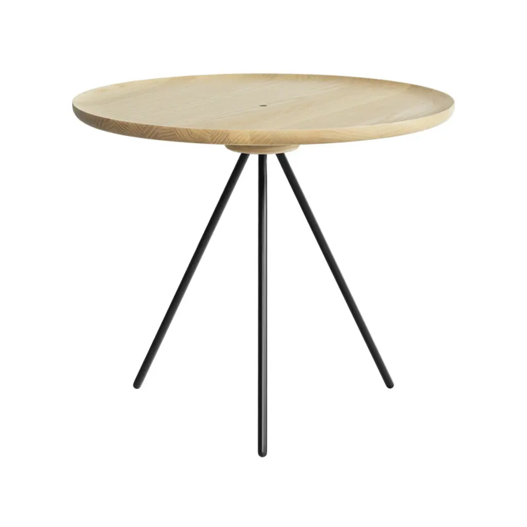 The Key side table by Hem consists of a solid ash top resting on slender metal legs. The most stunning feature of the design is the natural grain adorning the tabletop, creating fascinating patterns on the wooden surface. The tripod leg structure gives the table a light, contemporary appearance without compromising on sturdiness and functionality. The Key side table is a timeless addition to any interior whether alone or in a cluster of several tables, placed next to an armchair or in the center of a sofa set, for example. Delivered flat-packed, the table is easy to assemble without the need for any tools: the tabletop can simply be screwed onto the tripod legs. The table is designed by design studio GamFratesi.