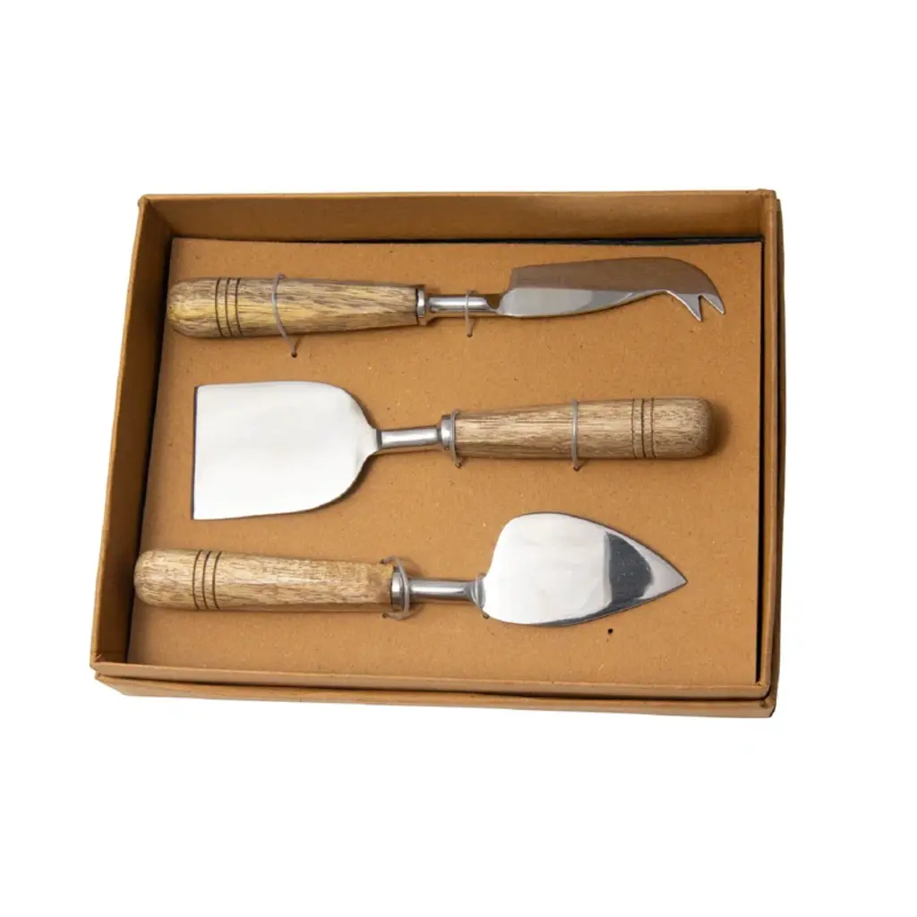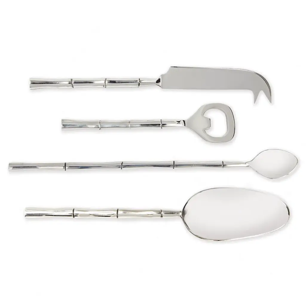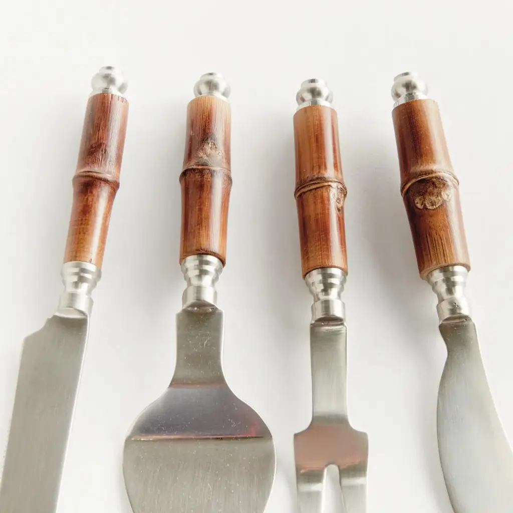 A handsome and classic cheese knife set fitted with real bamboo handles in a rich, earthy brown hue. A perfect hostess gift or present to yourself for endless entertaining. A beautiful collaboration with designer and lifestyle icon Barclay Butera.