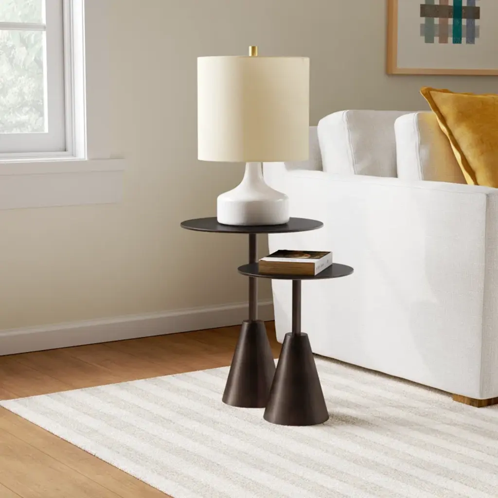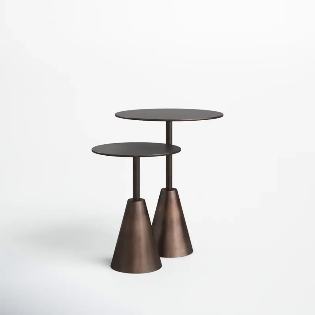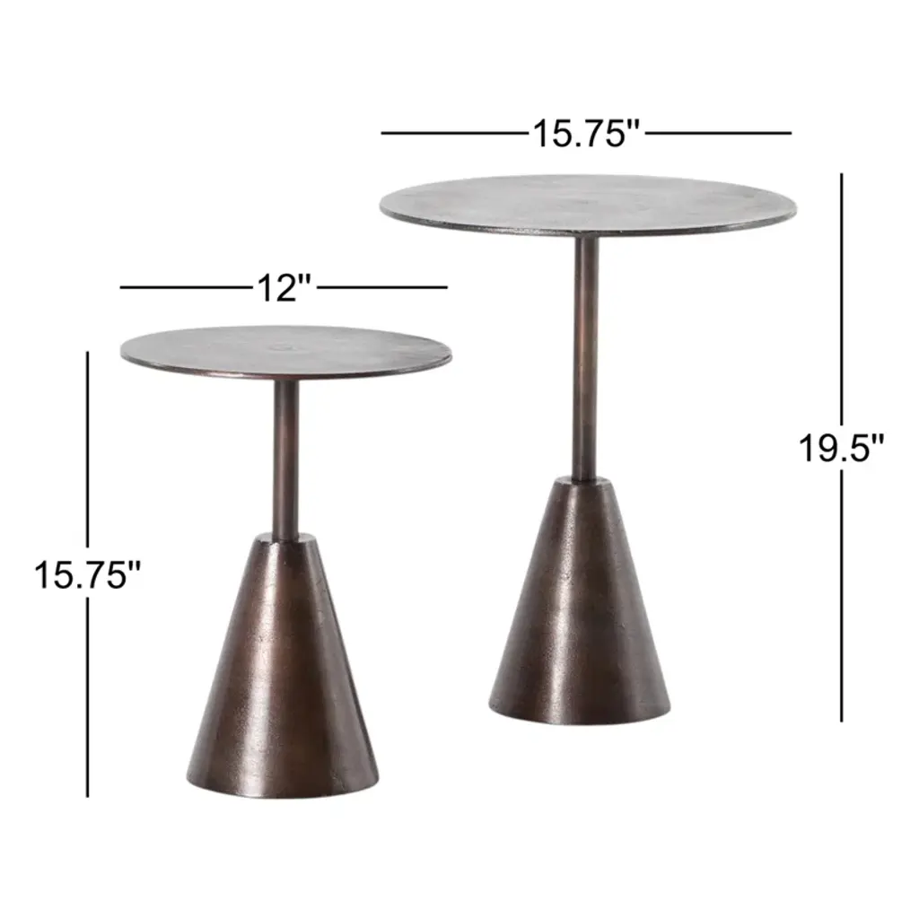 A Kiana 2-piece nesting tables plays with proportions while swirls of color add depth to the antique rust finish. Safe for outdoor use cover or store indoors during inclement weather and when not in use.