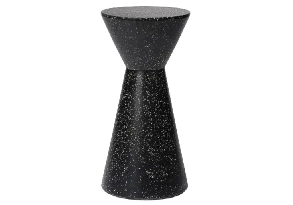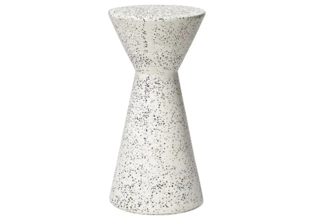 This drink table is the perfect functional accessory with its hourglass silhouette and petite size, is pairs perfectly with sofas and chairs for an added surface. Its durable, speckled design styles well in or outdoors for a chic, visually textured look.