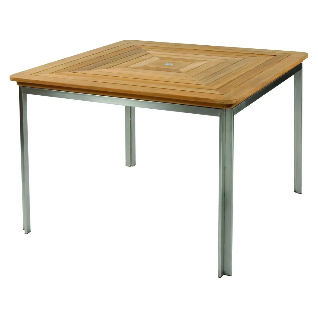 The modern Tivoli Collection is beautifully crafted from high grade stainless steel and premium teak. The pieces are generously scaled for exceptional comfort. Please Note: Although stainless steel is usually resistant to corrosion, the surface is susceptible to cosmetic discoloration due to the effects of salt water, salt air, chlorine from pool water, and air-borne chemicals. We do not recommend using this furniture if you are within 10 miles of the ocean. Please Note: Kingsley Bate fabrics, canopies, cushions, covers, special order sling colors, and special order finishes are considered customized and may have longer lead times. These items cannot be cancelled, returned, or exchanged.