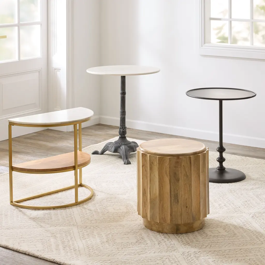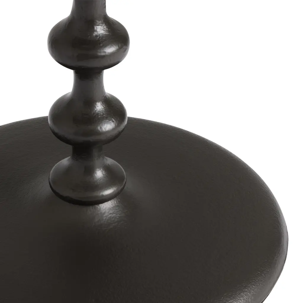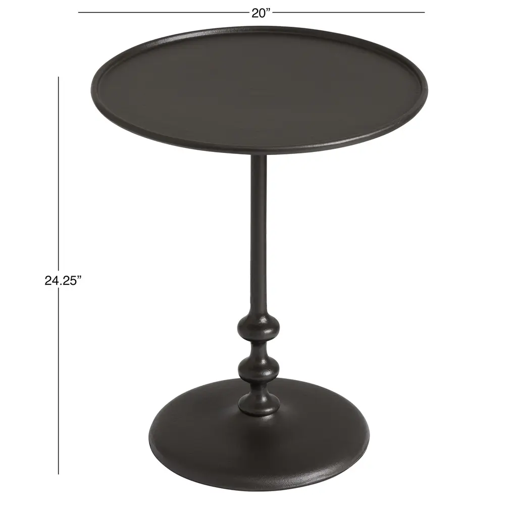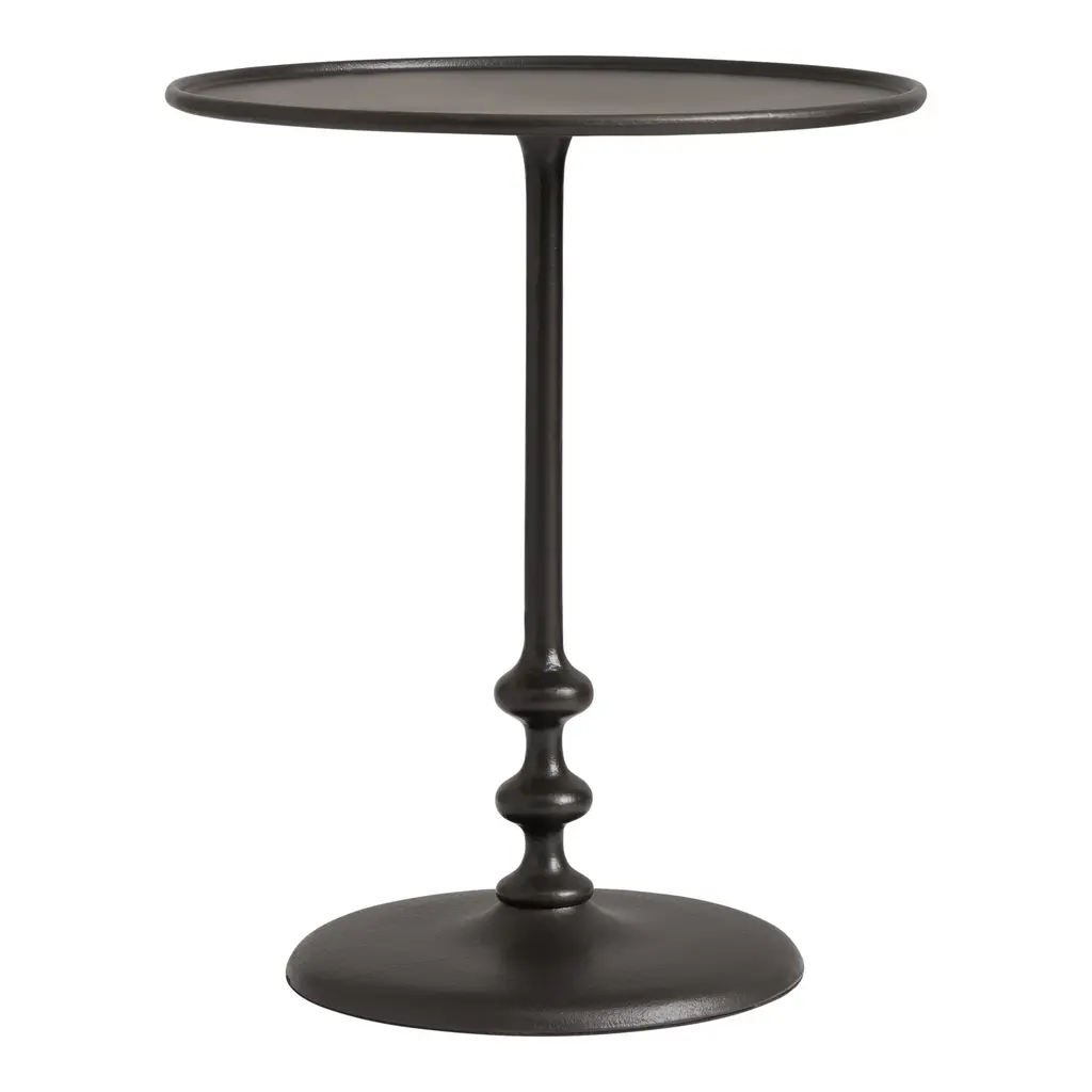 Ornamented with a bobbin-inspired pedestal, our large Kitt end table updates antique spool-style furniture design for modern homes. Refined and dramatic in a choice of striking finishes, the bobbin-adorned base draws from 17th-century furniture to add on-trend character to a round tray top. At once timeless and contemporary, this affordable accent table is an iconic perch for displaying decor and storing essentials.