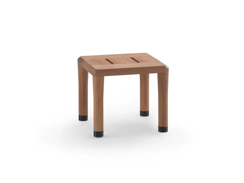 Kobo Outdoor is a table whose design theme can be traced to the archetype of this piece – a top and four legs, both set apart by their impressive size.For inspiration, it borrows from the dignified strength of the furniture made in some African countries.The deliberate simplicity of the design finds its force in the expressive qualities of solid iroko and in the artisan craftsmanship of its parts – the smooth, rounded slats of the top and the turned legs.The Kobo Outdoor family includes dining tables and coffee tables available in various sizes and finishes that can easily be matched with any of the seating options in the Flexform outdoor collection.If not in use for long periods of time, to maintain the Kobo Outdoor tables in good condition and as close as possible to their original state, protecting them with their respective waterproof covers is highly recommended.Features:Top in solid iroko slats, natural finish, stained grey, stained brown, or lacquered white finish.Legs in solid iroko, natural finish, stained grey, stained brown, or lacquered white finish. Internal steel supports.Feet in die-cast zama, with matt brushed or burnished finish. Feet rest on tips made of thermoplastic material.