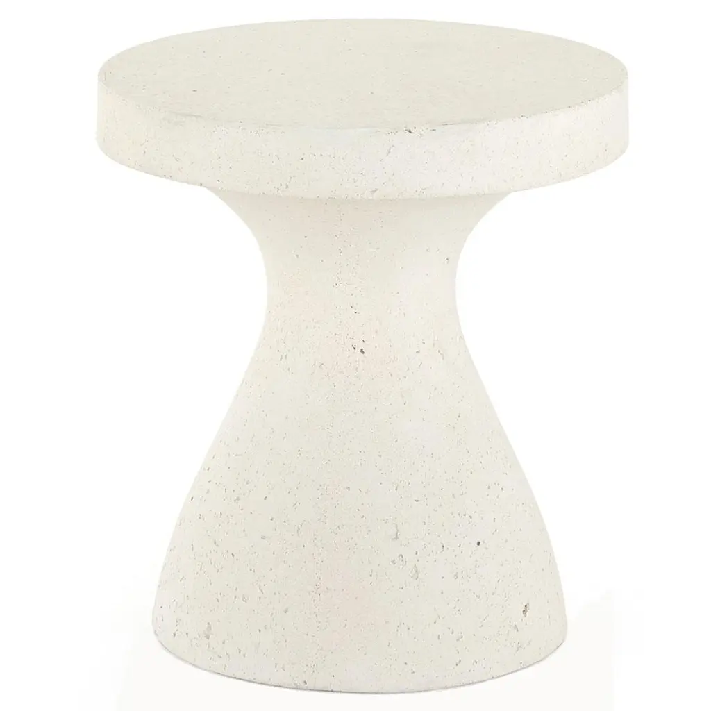 Smooth concrete is shaped into a durable, eye-catching outdoor end table. Its natural texture brings extra dimension and character to each piece. Cover or store inside during inclement weather and when not in use. Ships In 10-14 Business Days Concrete construction This image is for illustrative purposes only. The colors shown are accurate within the constraints of lighting, photography, and the color accuracy of your screen.
