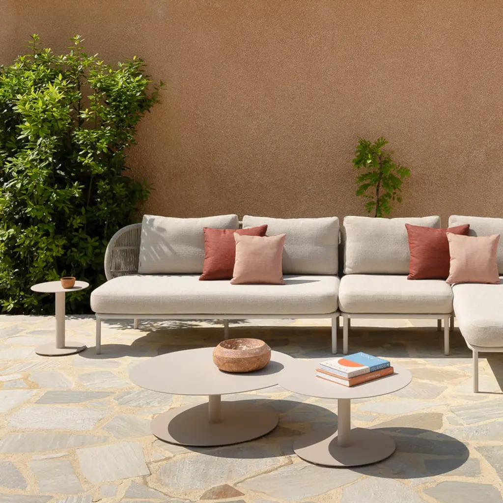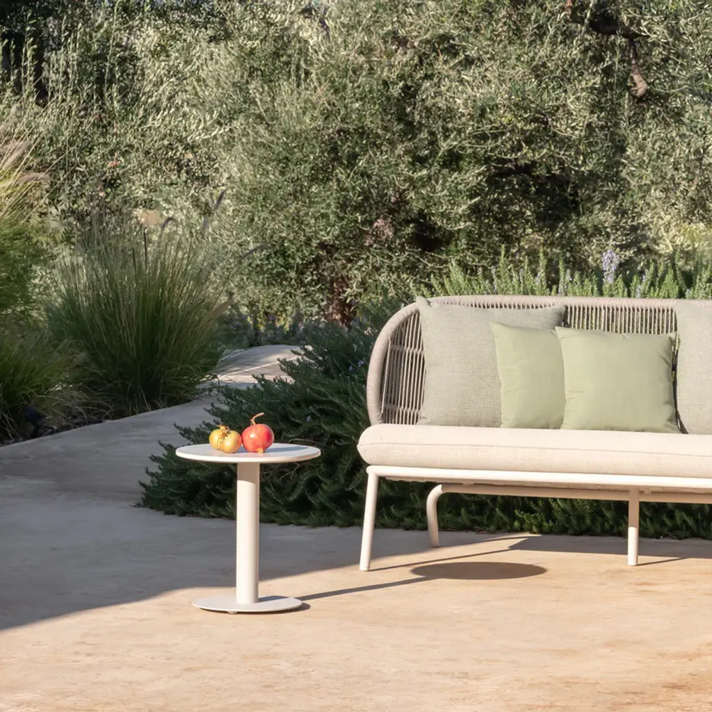 Elevate your outdoor space with the Kodo Outdoor Round Side Table from Vincent Sheppard. This versatile side table showcases a ceramic or powder coated aluminum top, perfect for enjoying drinks while lounging. Its sturdy aluminum base ensures lasting durability, making it both practical and elegant. Highlights
