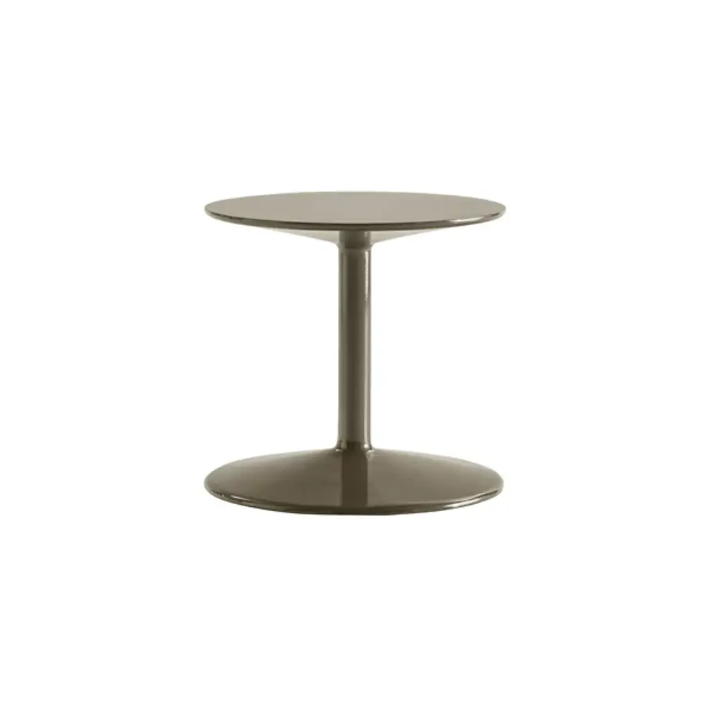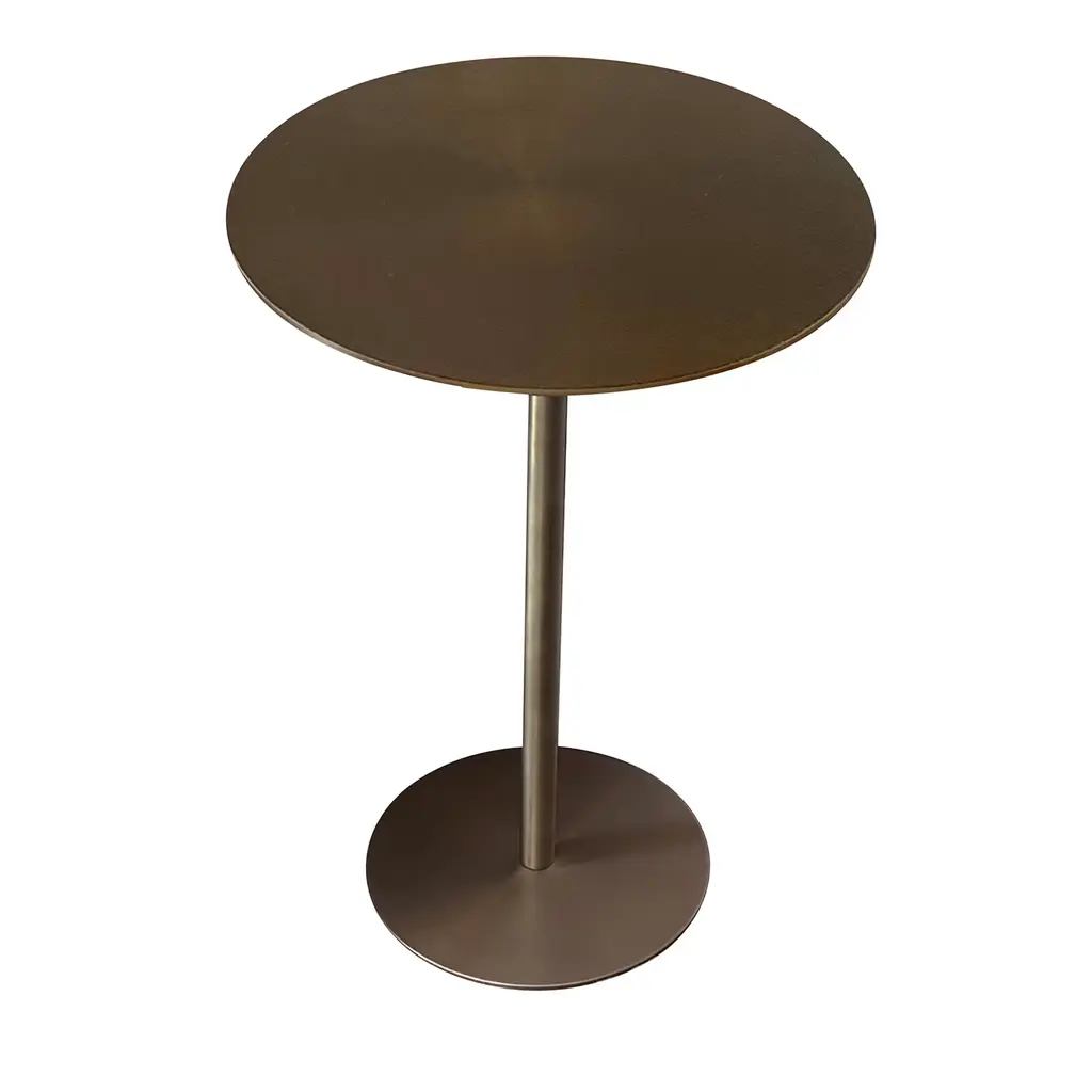 Kolby Round Side Table comes with bronze brushed metal, grid Lines design top and stainless steel base. The height is adjustable.
