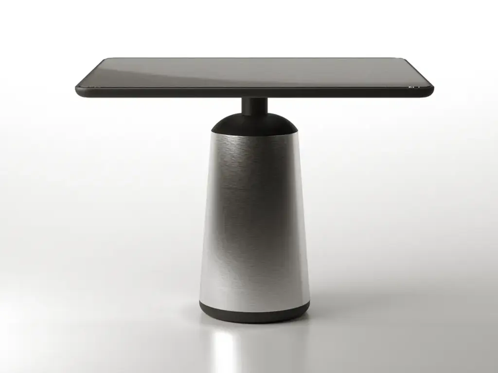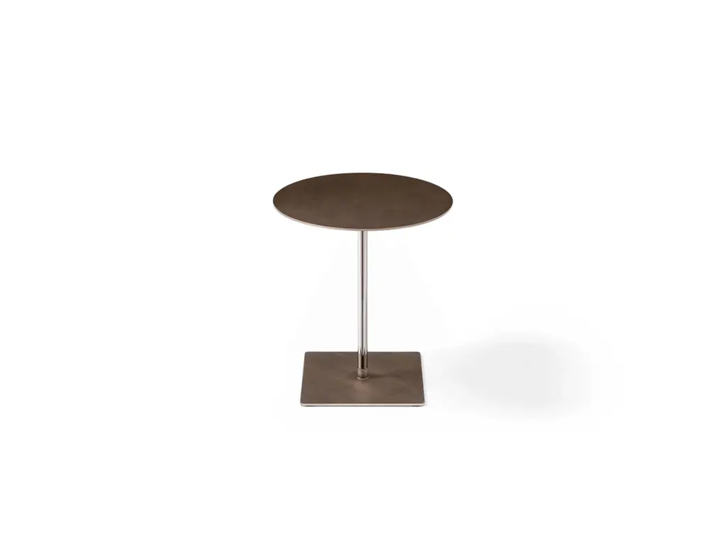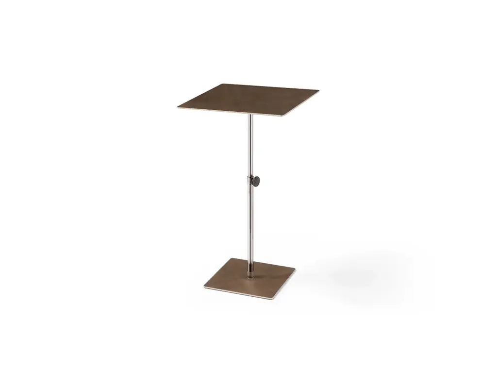 Kolby Square Side Table comes with bronze brushed metal, grid Lines design top and stainless steel base. The height is adjustable.