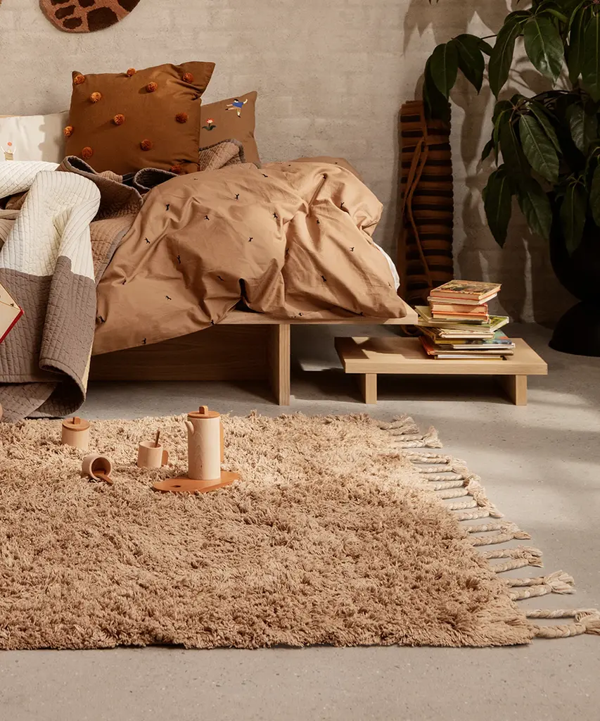 Made to complement our Kona Bed, the Kona Side Table in FSC-certified oak veneer peeks out from under the bed frame to provide a practical platform for a book, lamp, and glass of water. The Japanese-inspired design is elevated above the ground to the perfect height. But it doesn't have to stay in the bedroom: use it to display objects in a living room or bathroom. Designed and produced by the Copenhagen-based studio Ferm Living.