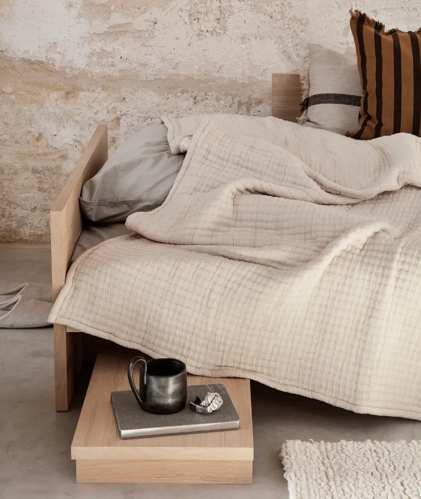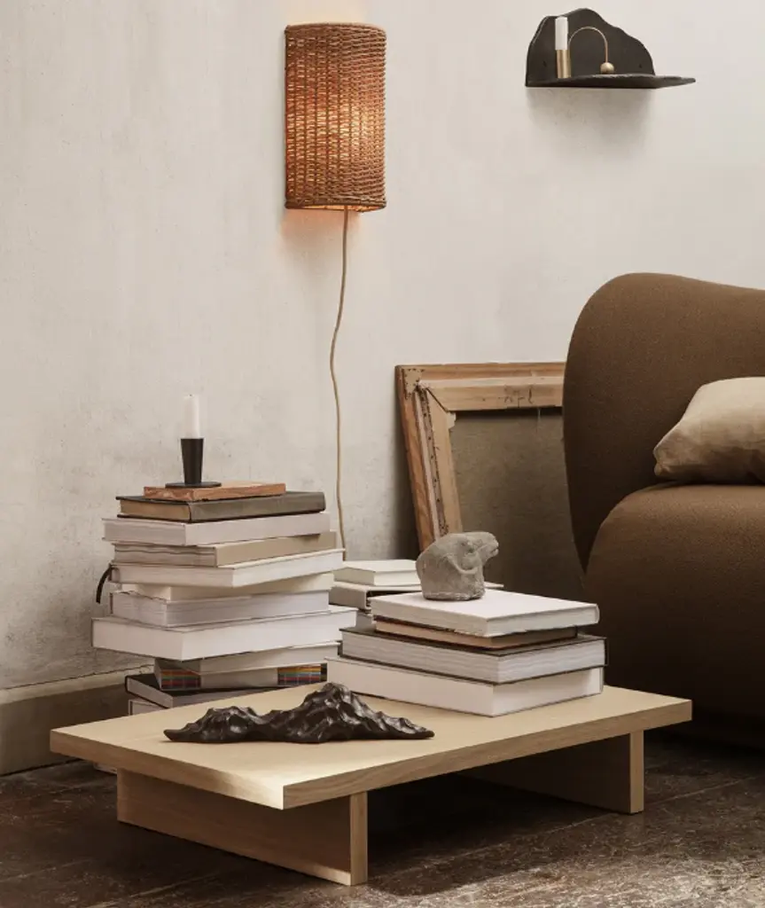 Made to complement the Kona Bed. The Kona Side Table in oak veneer peeks out from under the bed frame to provide a practical platform for a book, lamp and glass of water. The Japanese-inspired design is elevated above the ground to the perfect height. But it doesn't have to stay in the bedroom: use it to display objects on in a living room or bathroom. Embrace the art of ’low living’ with the Japanese-inspired Kona Low Table + Kona Display Table. With its simple and elegant construction, the design is elevated just above ground to the perfect height. Use it to display plants, books and your favorite objects or as a coffee table for when you’re lounging on cushions or on the floor.