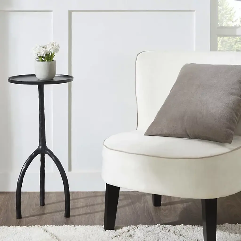 The Konsta Accent Table by Renwil is a charming and playful piece of furniture that adds character to your space. Made in India by skilled artisans, this table is a true work of art that showcases expert craftsmanship with a sculptural form is inspired by modern art. A trio of tall, pronged legs and a long neck hold up a demure tabletop, providing ample surface space for drinks or decorative items.