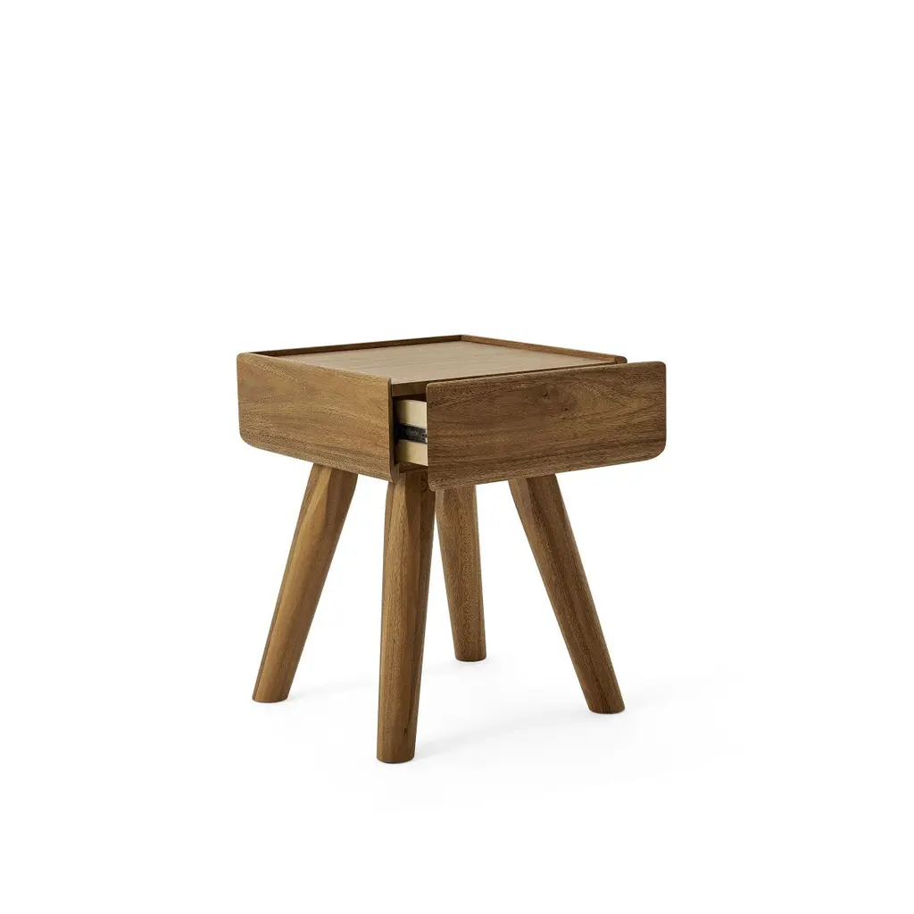 Kota Beside Table by DAaZDimensions: D 45 x W 45 x H 58 cm.Materials: Albizzia wood.DAaZ Furniture honors the spirit of adventure. We embrace the escape of the ordinary and revel in the magic that’s found in the unexpected. Our artistic ability shines through in our choice of contrasting designs that challenge conventions, tailor trends, and bring out the creative flair in our customers too. Faced with a treasure trove of choices, you are inspired to walk individual paths leading to the unknown, unveiling new sights, enveloping you in the scent of nostalgia.We bring to your home more than just beautiful design, but unique fragments of life stories. After all, what is your home but a blank canvas on which to celebrate your own journey with the people you love.