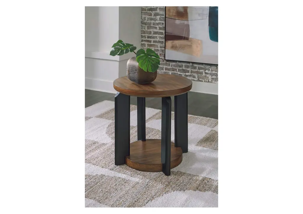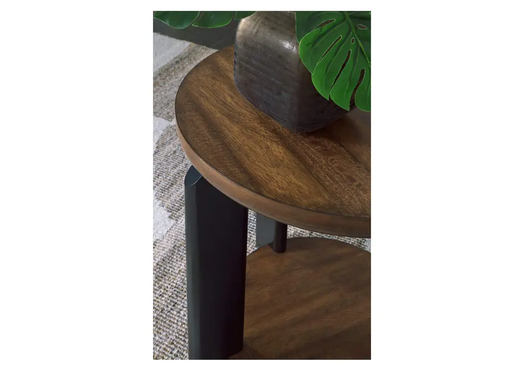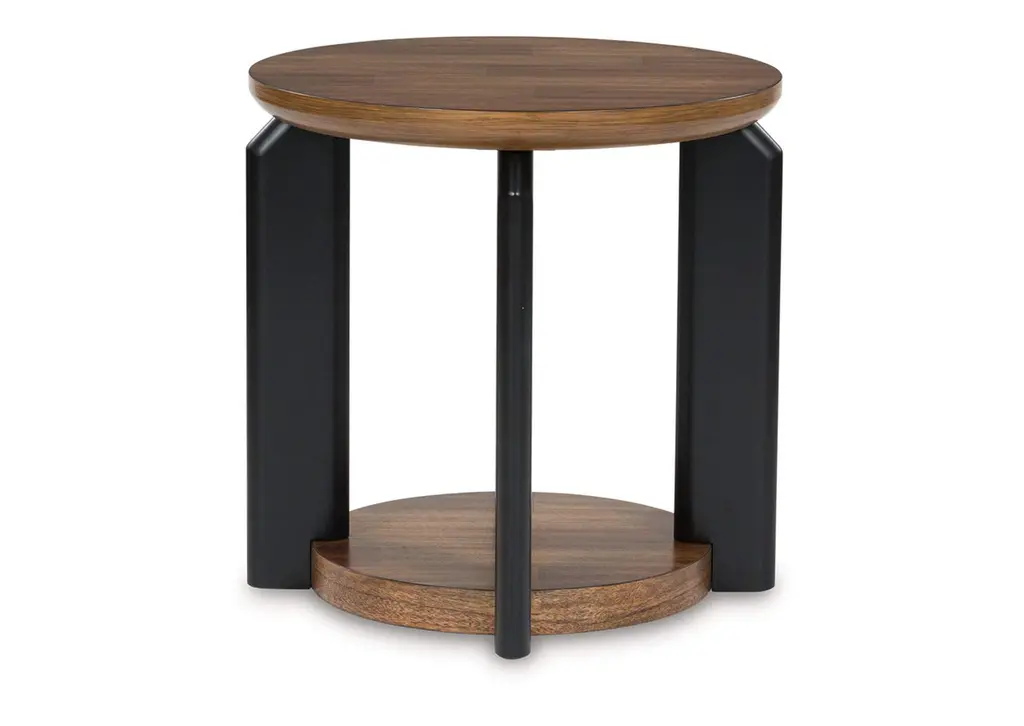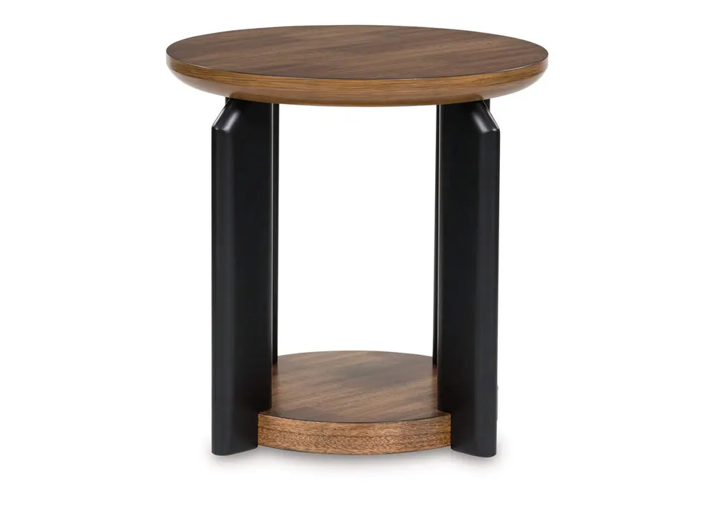 Experience the captivating allure of the Kraeburn end table, an effortless blend of casual and refined aesthetics. Its two-tone finish combines satin black with a rich brown wood tone for a modern, relaxed vibe that you'll love. Perfectly suited for your contemporary home, it offers open storage to accommodate your favorite books and accessories. Your search for simple, chic design ends here. Weight 37.000 lbs. (16.65kgs.)