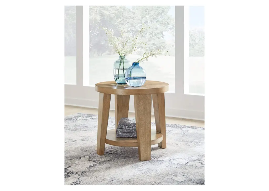 Add exceptional casual appeal to your entertaining and gathering space with the Kristiland end table. A light wood-tone finish enhances its natural beauty, while thick, chunky geometry highlights the casually cool design. This table's relaxed feeling is right at home next to a couch, loveseat or your favorite comfy chair. Weight 52.000 lbs. (23.4kgs.)