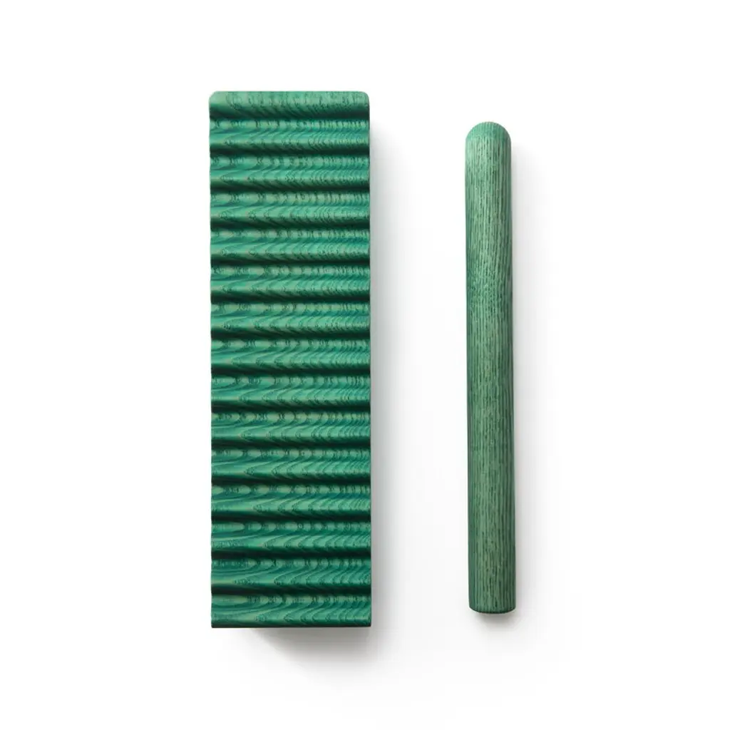 PELATA pieces' Krroc is a quirky musical instrument that playfully resembles a crocodile. Designed by the Norwegian duo Anderssen & Voll, this percussion instrument is as fun as it is easy to play, whether you're an experienced musician or a beginner. Just grab the featured wooden stick, and with a few taps, strokes or brushes, you can create your own unique rhythm. When you're not making music, Krroc doubles as a delightful eye-catcher on your living room bookshelf or hallway side table, bringing a smile to your face with its mere presence.