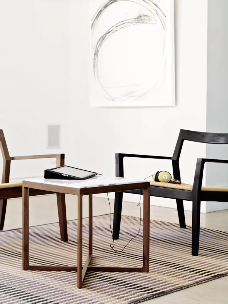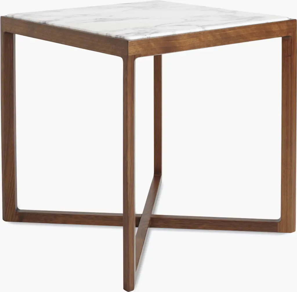 After earning a degree in furniture design from Leeds Metropolitan University in England, Marc Krusin cofounded the design group Codice 31 and has collaborated with Piero Lissoni, Kartell, Flos and Knoll. Seeing a need for simple and sophisticated guest seating and occasional tables, he created his Krusin Side Table (2011) with glass or marble top. The strong geometry of this piece is softened with radius and chamfer details. Suitable for residential or commercial use.