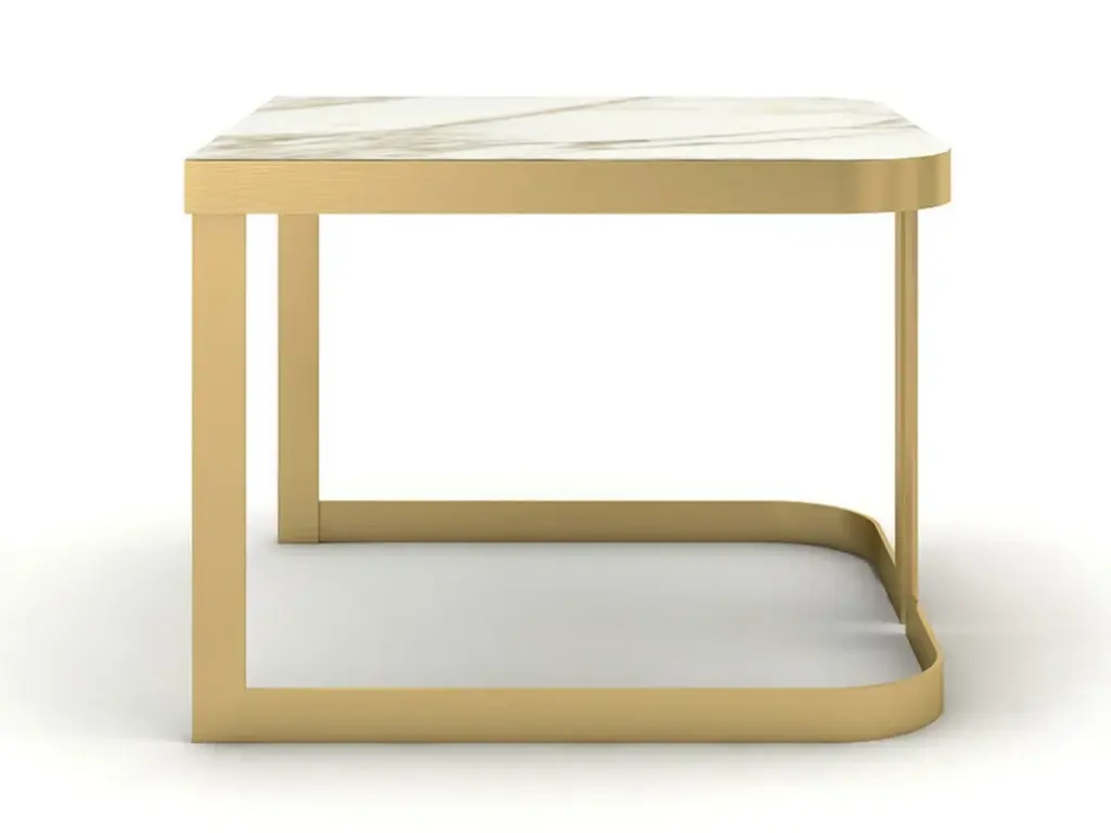 In keeping with the simple linear forms of the Krusin Chair series, the new Krusin Occasional Tables serve up clean, graceful lines in a range of finishes and table top options. The Krusin End Table with Marble Top is constructed of an angular frame in select American and European hard woods, featuring dowel and mortise & tenon joinery. The cross-base footing provides a dimensional, shadowing effect at the bottom of the table frame. Marble table tops rest within the frame and are made of 0.75” thick coated marble in a polished or satin polyester coating. Select Arabescato White-Grey Marble or Calacatta White-Grey Marble table top. Then select from 15 base finishes.