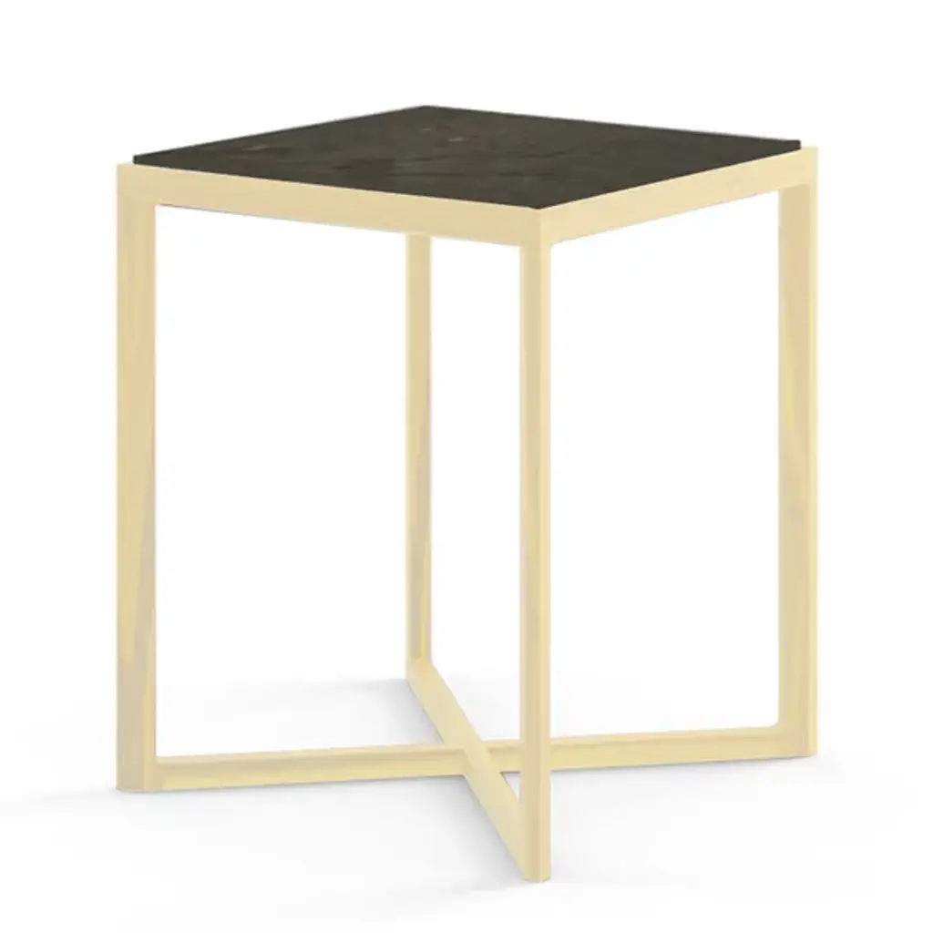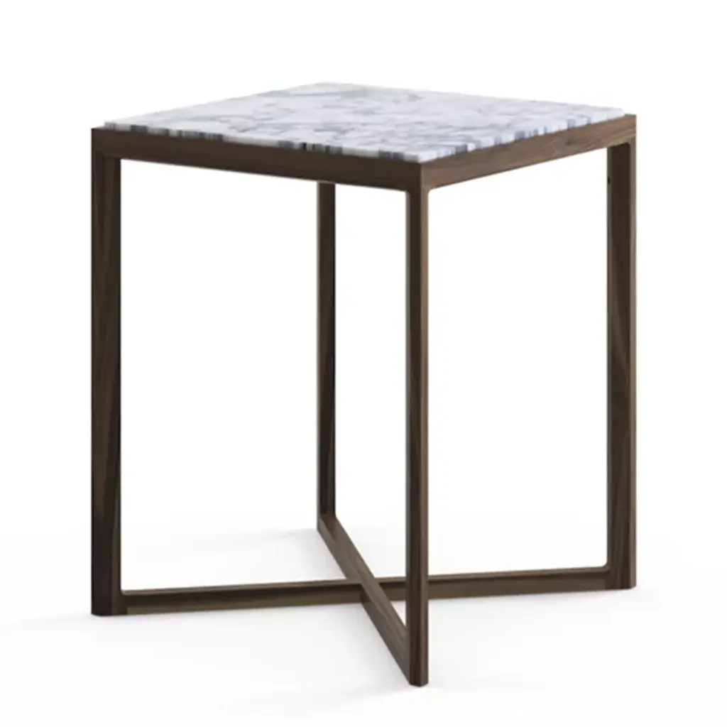 In keeping with the simple linear forms of the Krusin Chair series, the new Krusin Side Tables serve up clean, graceful lines in a range of finishes and table top options. The Krusin Tall Side Table with Marble Top is constructed of an angular frame in select American and European hard woods, featuring dowel and mortise & tenon joinery. The cross-base footing provides a dimensional, shadowing effect at the bottom of the table frame. Marble table tops rest within the frame and are made of 0.75” thick coated marble in a polished or satin polyester coating. Select Arabescato White-Grey Marble or Calacatta White-Grey Marble table top. Then select from 15 base finishes.