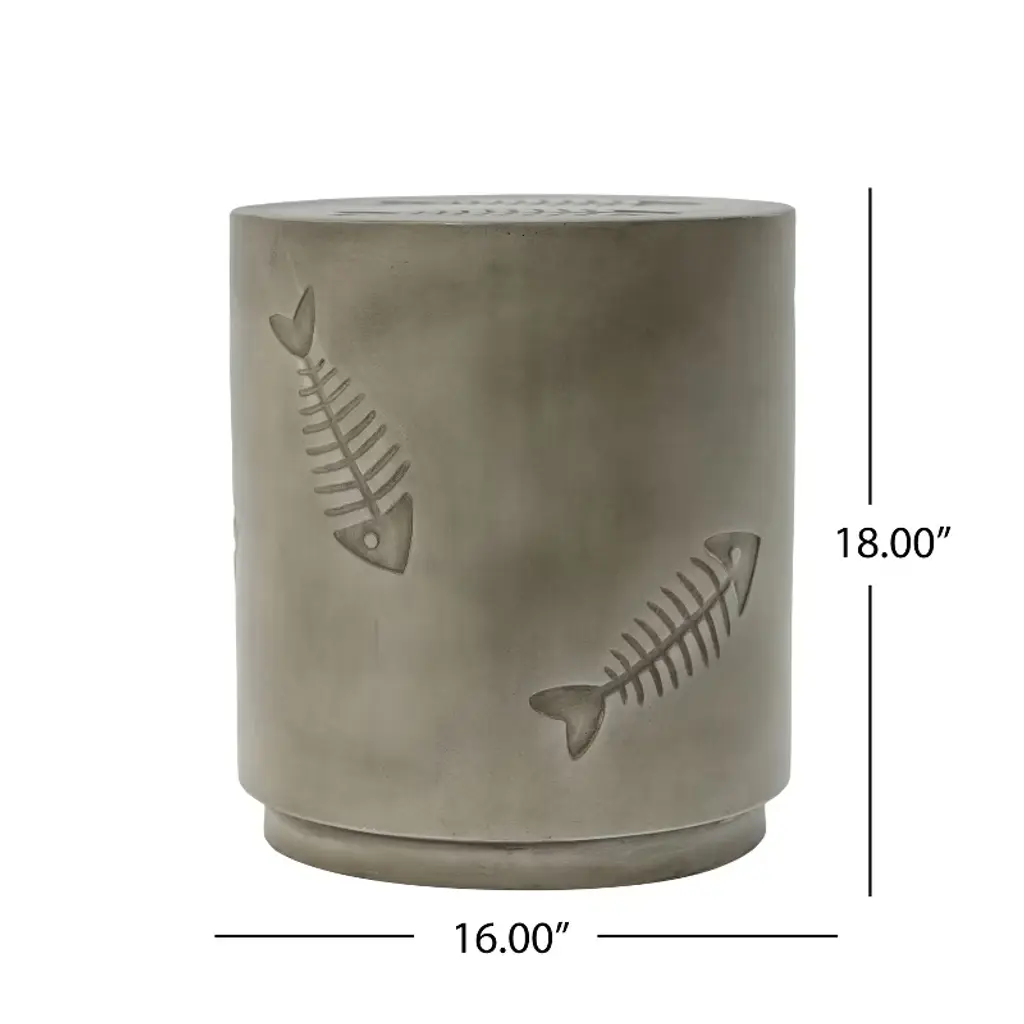 Kumasinova 18" Mgo Side Table Cylindrical Outdoor End Table With Fish Pattern,decorative Poolside Table Weather Resistant Accent End Table,gray