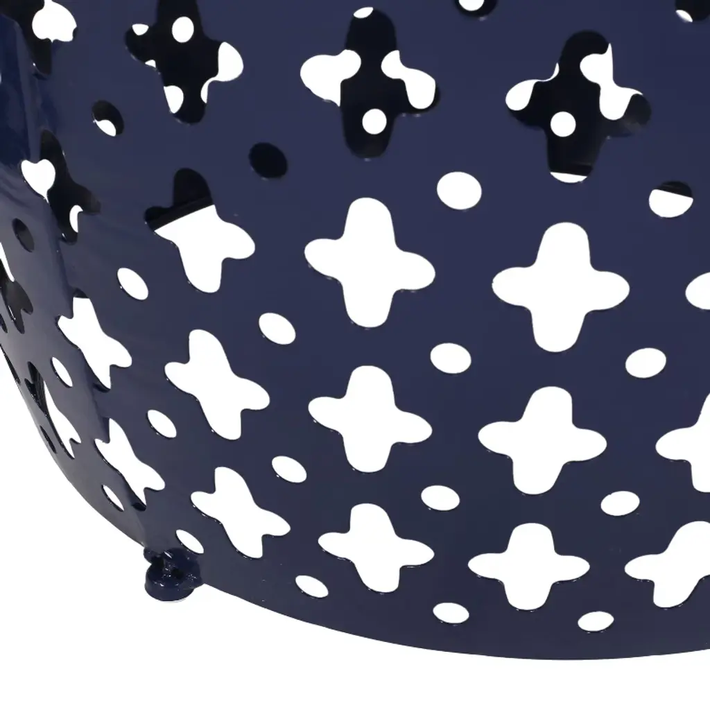 Kumasinova 20"barrel-shaped Side Table With Hollow Carved Silhouette,decorative End Table For Poolside,porch&patio,powder-coated Iron Frame,blue