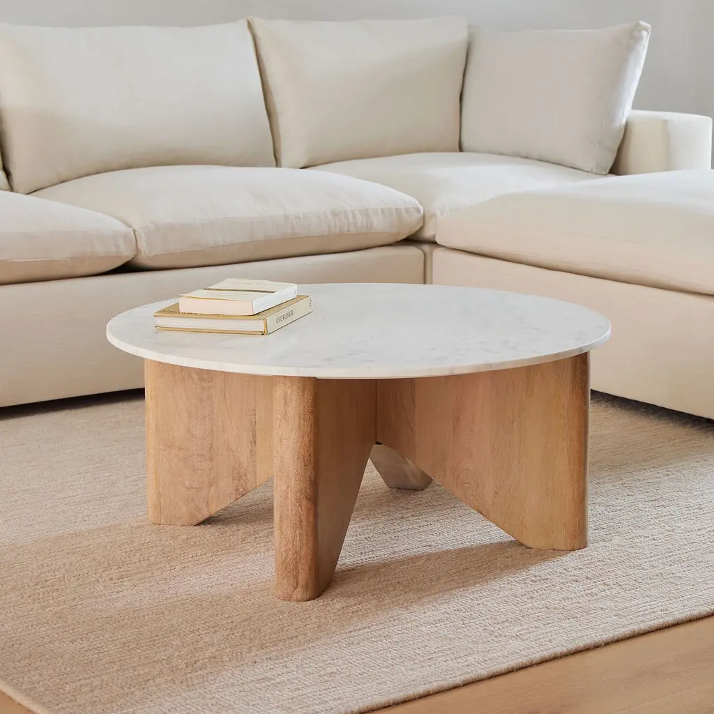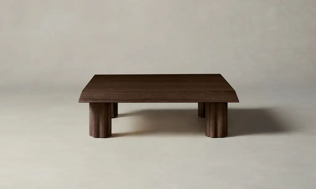 Japanese-inspired, the top of the Kumo cocktail table is split into two irregularly shaped but equally-sized pieces. The matching end table features one of these shapes. The trays are made of sand stone, a warm-toned mineral from Rajasthan, and evoke the idea of water receding across ancient stone. The sandblasted and black stained solid ash bases complete the design.