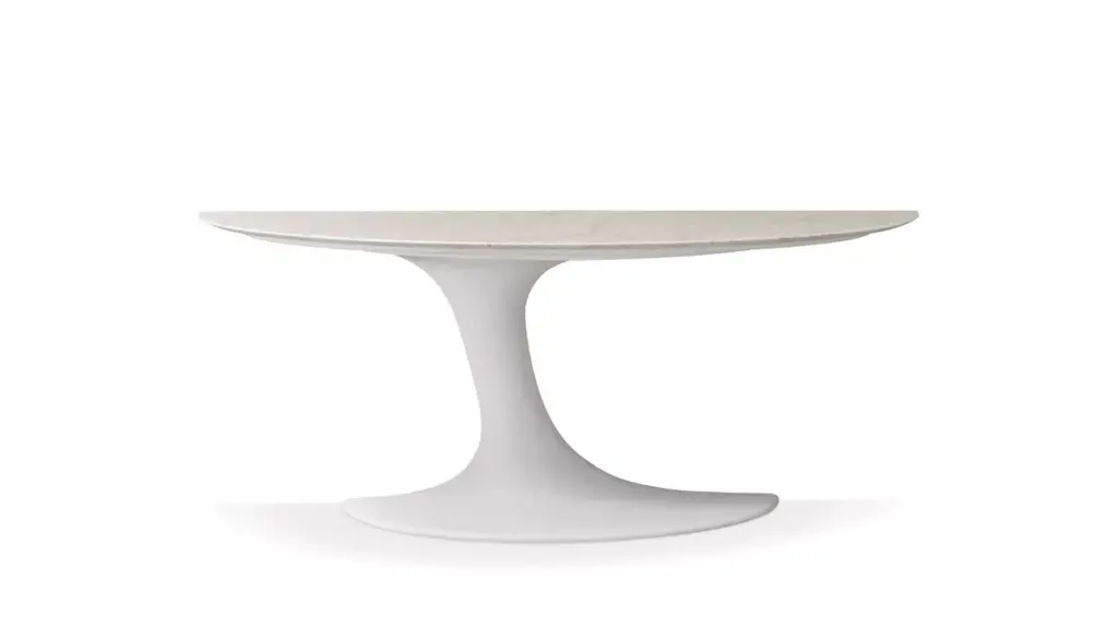 Kyknos Refined Contemporary Marble Low Round Table 27/100Dimensions: 100 x H 27 cmMaterials: KynosAngelo is the essence of a round table in natural stone, a sculptural shape in robust material with elegant lines and refined finishes.The collection consists of a round/oval dining or conference table, side tables and lower tables.Suitable for both indoor and outdoor use!All tables are made by order and finished by hand to be sure that the table top and base become one pieceThe basic collection consists of 9 different marbles and different standard dimensions, however on request we make to measure.Almost any size or marble is possible!All tables are signed and numbered (the low and side tables are only signed).All tables are impregnated with Lithofin Nanotop. This protection is not visible and the marble keeps its natural look and feel. With the delivery of every table, a maintenance set of Lithofin is included.The production time is standard 12 weeks.The design Angelo is the essence of a round or oval table in natural stone, it features a sculptural form, sturdy material, an elegant line and a refined finish. Two elements, table base and top, form one whole together. The bottom is one running curve from table foot to edge. The conical connection creates a stable whole.To show the marble in it’s most expressive character, different finishes are possible (polished, honed, brushed, striped, sandblasted & brushed). The basic collection consists of nine different types of marble and different sizes. On request this design can be executed in almost any type of marble and on measure. This table is perfectly suitable in a housing, retail or office environment. As the table is supported by one central foot it creates a lot of flexibility in seating. Executed in hard variations of natural stone suited for external use, this design can be a perfect garden table or sculpture.Angelo M/R 130 : ø 130 x 75 cmAngelo M/R 160 : ø 160 x 75 cmAngelo M/R 180 : ø 180 x 75 cmAngelo M/O 210 : 210 x 135 x 75 cmAngelo M/O 250 : 250 x 160 x 75 cmAngelo M/O 290 : 290 x 160 x 75 cm The basic collection is available in the following marbles: Kyknos, Grafite, Travertino Rosso, Grey Saint Laurent, Picasso Green, Port Saint Laurent, Travertino Silver, Rosso Lepanto and Bianco Statuarietto in a honed finish. On request different sizes, finishes and marbles are possible. AwardsGood Design Award – Chicago, USA (2018)People’s Choice, AZ Award – Toronto, Canada (2019)German Design Award – Frankfurt, Germany (2020).