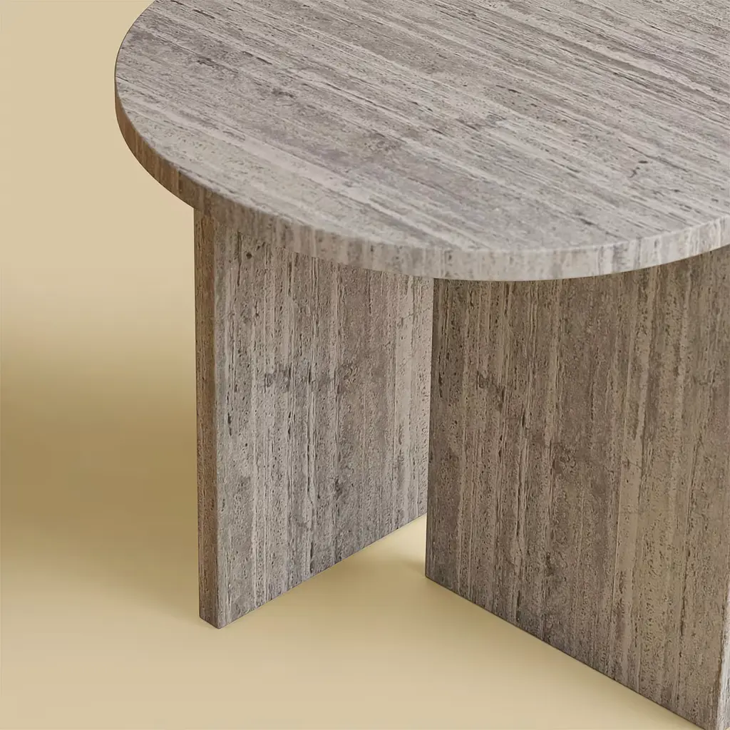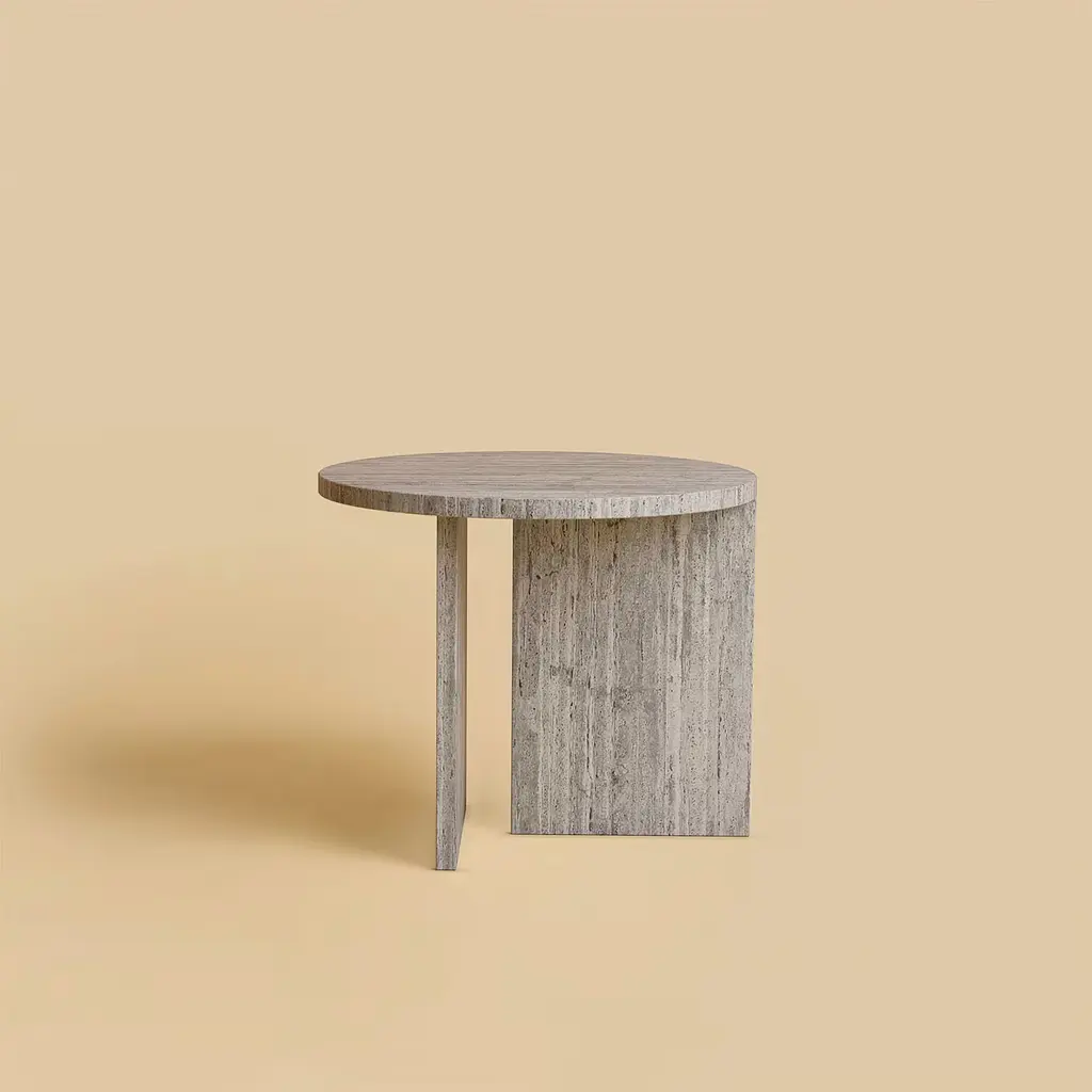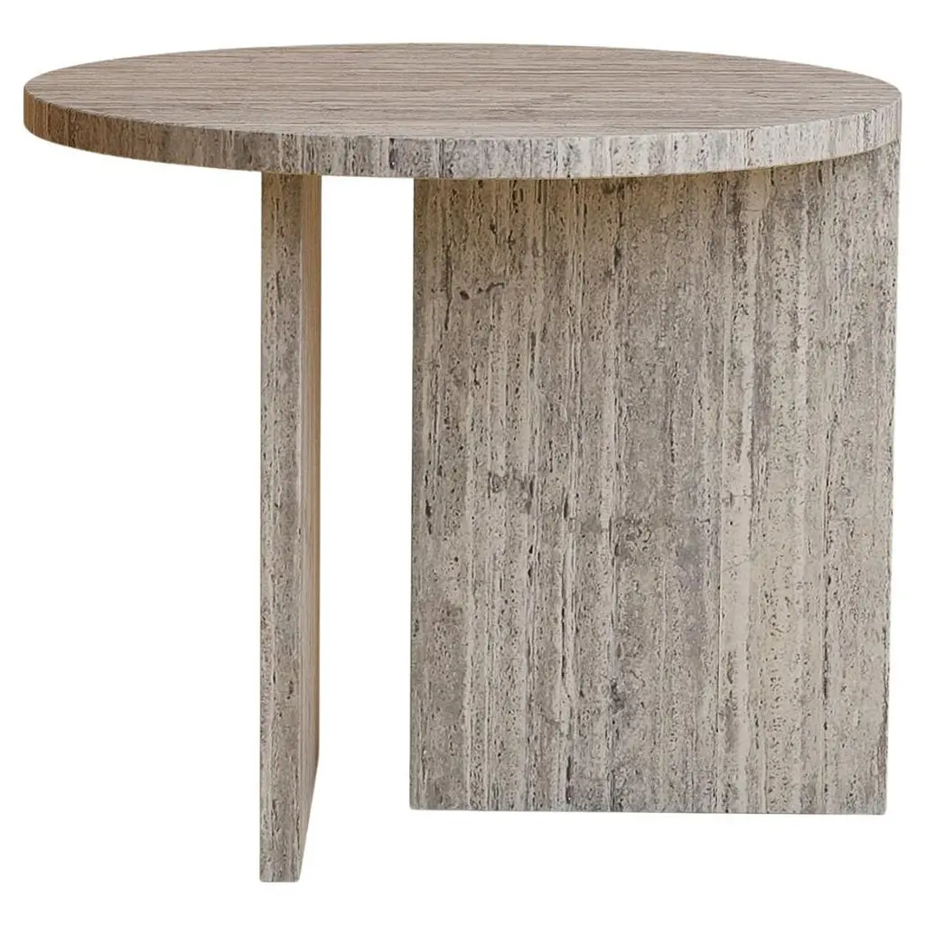 A testament to Italian craftsmanship, this splendid side table belongs to the Kyushu series of refined design marble tables. Entirely made of Titanium travertine, it features a circular top resting on sleek legs, with one part seamlessly interlocking with the top. This harmonious fusion of technology and craftsmanship is meticulously hand-finished to enhance its unique and precious natural allure. Please consult the Artemest catalog for additional variants.