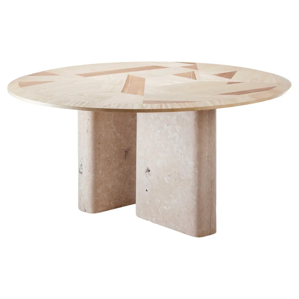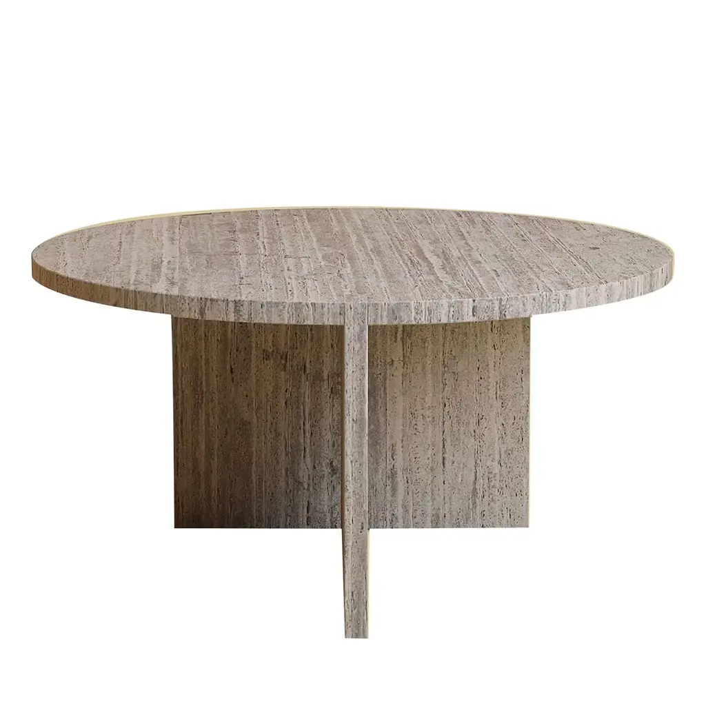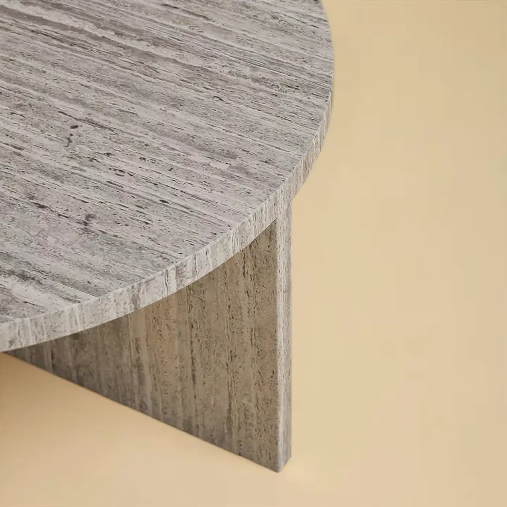 A testament to Italian craftsmanship, this splendid side table belongs to the Kyushu series of refined design marble tables. Entirely made of Titanium travertine, it features a circular top resting on sleek legs, with one part seamlessly interlocking with the top. This harmonious fusion of technology and craftsmanship is meticulously hand-finished to enhance its unique and precious natural allure. Please consult the Artemest catalog for additional variants.