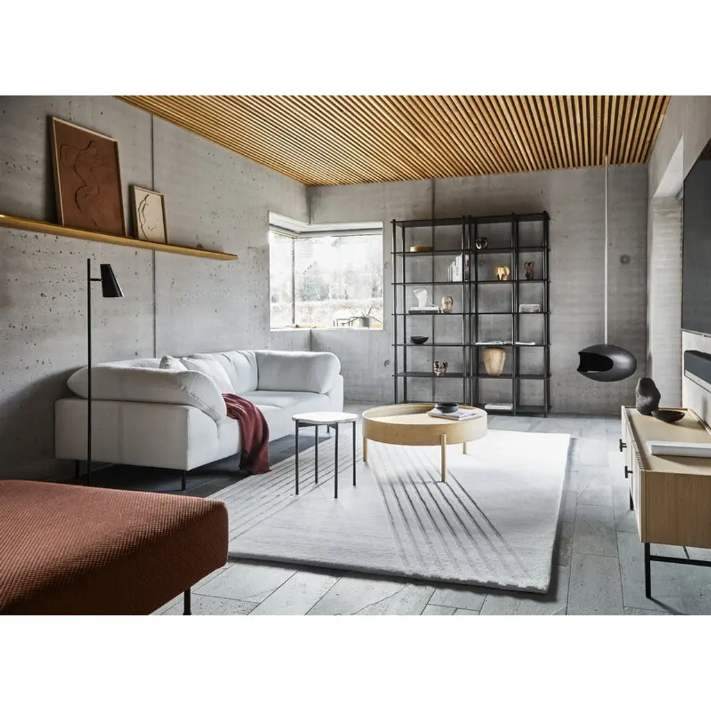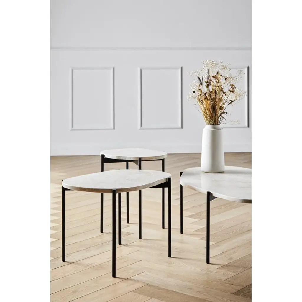 Woud’s La Terra occasional table is dominated by a minimalist look and an elegant, nature-inspired design language. The table consists of a simple metal frame and a table top, made of travertine, with an organic, irregular shape reminiscent of pebbles on the beach. When creating the table collection, designer Agnes Morguet imagined a barren, rocky beach landscape – she wanted to translate the tranquil atmosphere of a barefoot walk to the design. Just like every pebble on the beach, every La Terra table is unique, as the travertine top's patterns and shades vary from beige and off-white all the way to brown and gray. Place a single table next to a sofa or armchair as an elegant side table, or use the different-sized tables from the La Terra collection to create a beautiful ensemble of tables as the centerpiece of your living room!