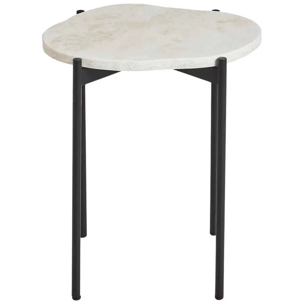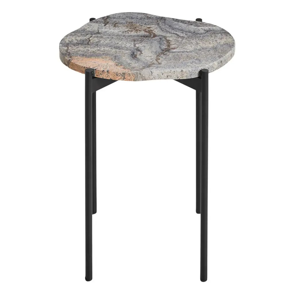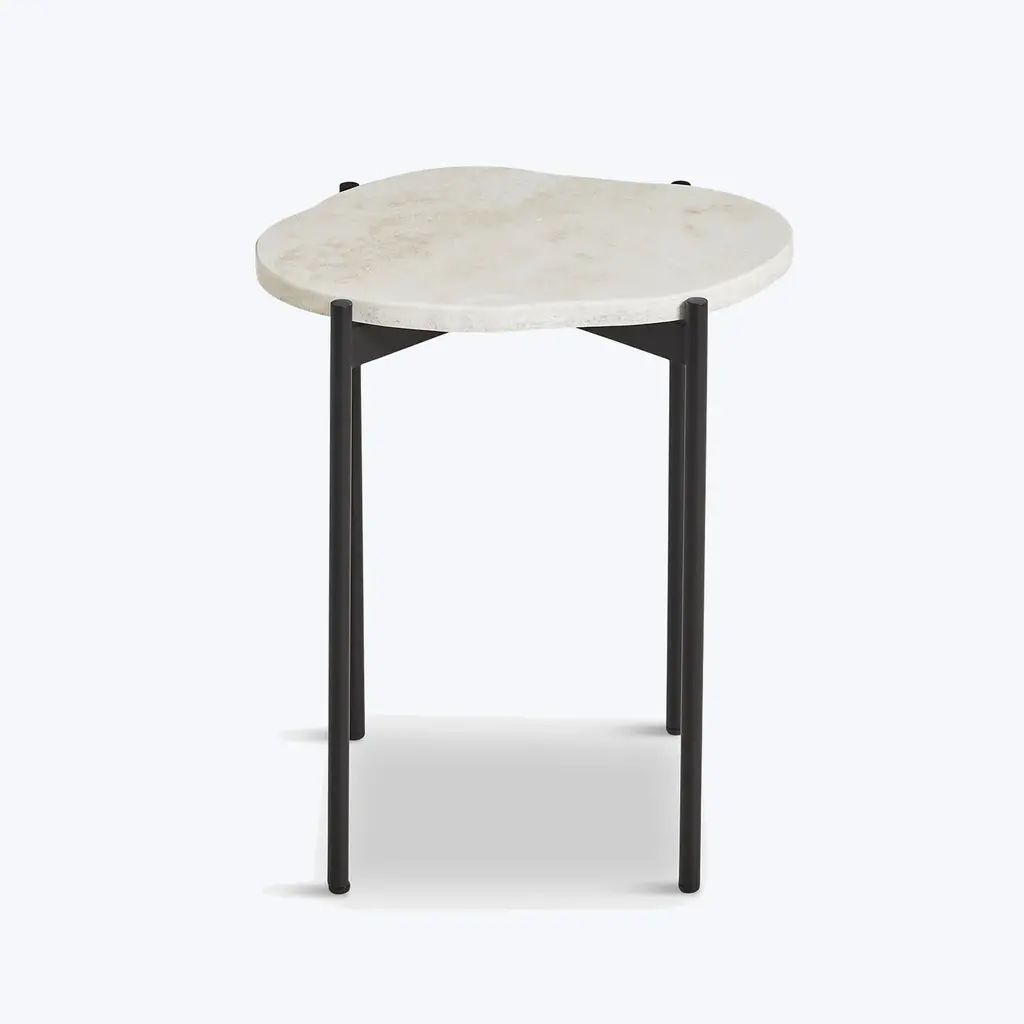 *Due to the natural shape and material, size may very slightly from table to tableThe La Terra table is a harmonious and sophisticated addition to your home. Inspired by nature, the design beautifully embraces the organic shapes and muted colours of soft pebbles in the landscape. The infinite variants of the natural stones are reflected in the three smooth, floating shapes of the tabletop, which make a subtle contrast to the sleek crossing black metal frame. Made from travertine, every surface is unique as the play of colours varies in the natural material. Selected to bring a touch of nature and calm into any space. With three different available sizes and heights, the table can be placed as a single piece or entire landscapes can be created.