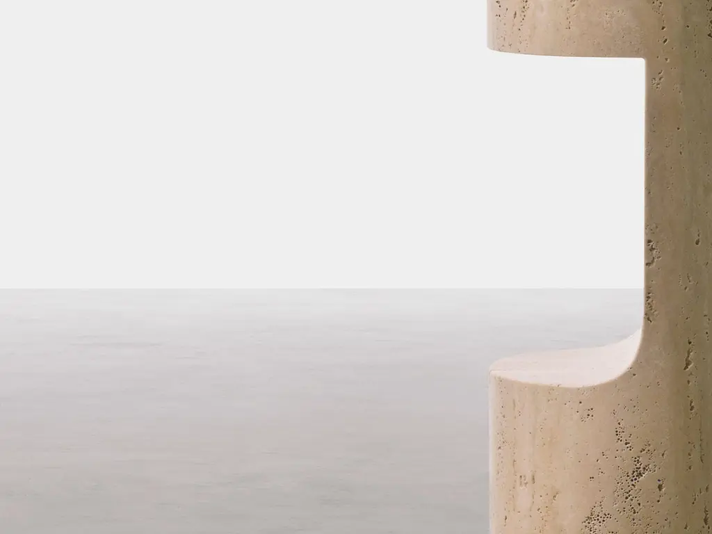 In the shapes, as in the name, a clear reference to a musical wind instrument. An impeccable workmanship oftravertine that highlights in the hollowed-out part of the throat the unique characteristics of this stone.An unexpected design that seems to expel the specific weight of the material in which it is made.The shape implies its inspiration, in fact in music it represents the typical shape of some wind instruments.Monolithic milled structure in solid Roman Travertine.The classic Roman open-pore “Travertino” is a type of marble with a strong material impact and it is wonderfully pleasant to the touch.
