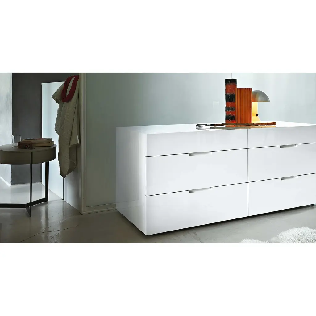 The Lacquered 6-Drawer Chest by Lema Flin is a refined system of drawer containers designed for the sleeping area with a classically minimal design, also to be chosen for the living room: bedside tables and chests of drawers, available in different sizes and volumes, all in two finishes, matte or glossy lacquer. Evergreen solutions with timeless elegance, rigorous and rational in design with harmonious proportions, complete the bedroom furniture, enriching it with their discreet sobriety. Individual protagonists of the environment can be combined to create domestic architecture on a reduced scale. The handle obtained from a cut in the thickness of the facade helps define the refined aesthetics of Flin.