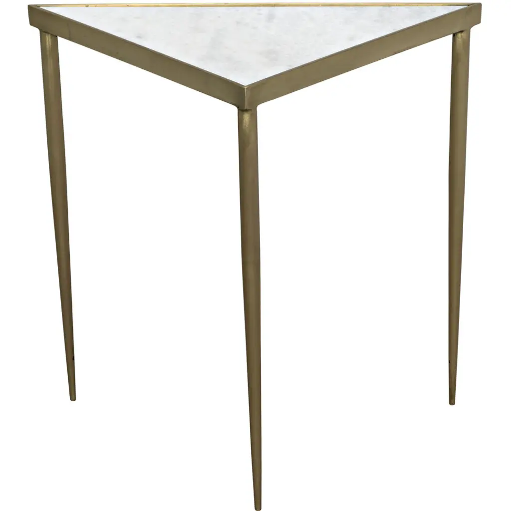 Presented on iron legs rendered in gold leaf, this simple-yet-impactful side table features a naturally stunning white marble surface.