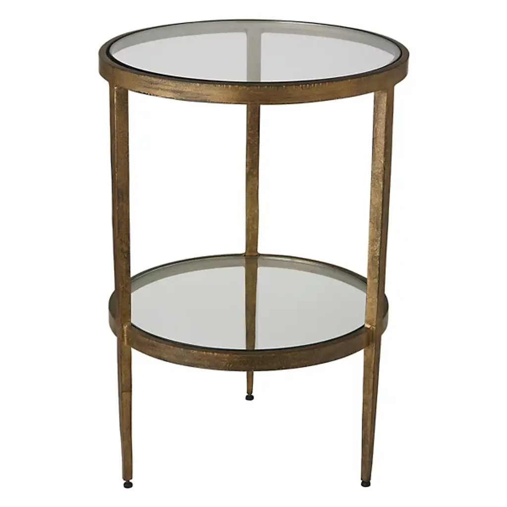 Give your home décor a rustic modern appearance with the Laforge Two-Tier Side Table from Global Views. This side table is composed of fine metal. Forming an elegant, drum-like silhouette, your side table is arranged into 2 tiers, giving you space to display your glasses, trays, and home accessories. Place the Laforge Two-Tier Side Table beside companion pieces in the Laforge family to complete the look of your living space