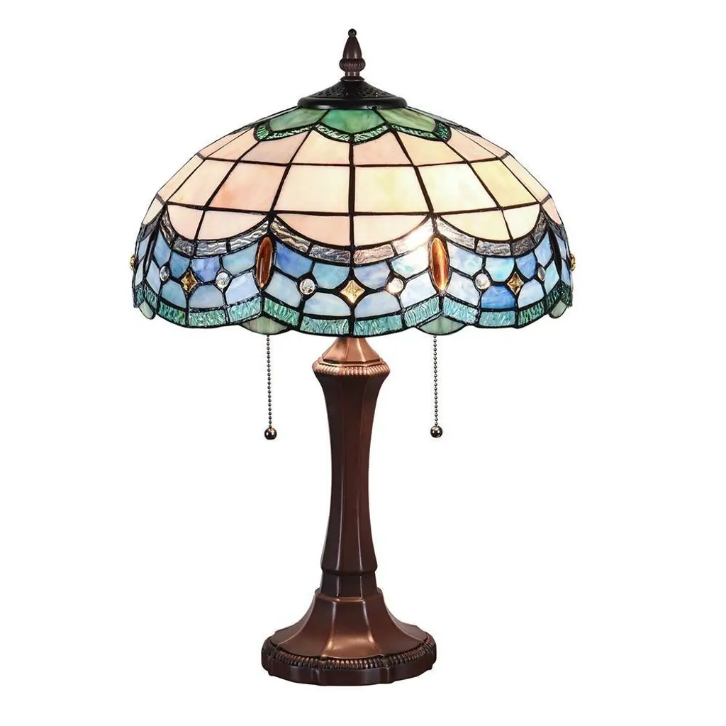 Lamp Tiffany Victorian Style Table Stained Glass Vintage Shade Light - 16" X 23" - Brown - 16" X 23"