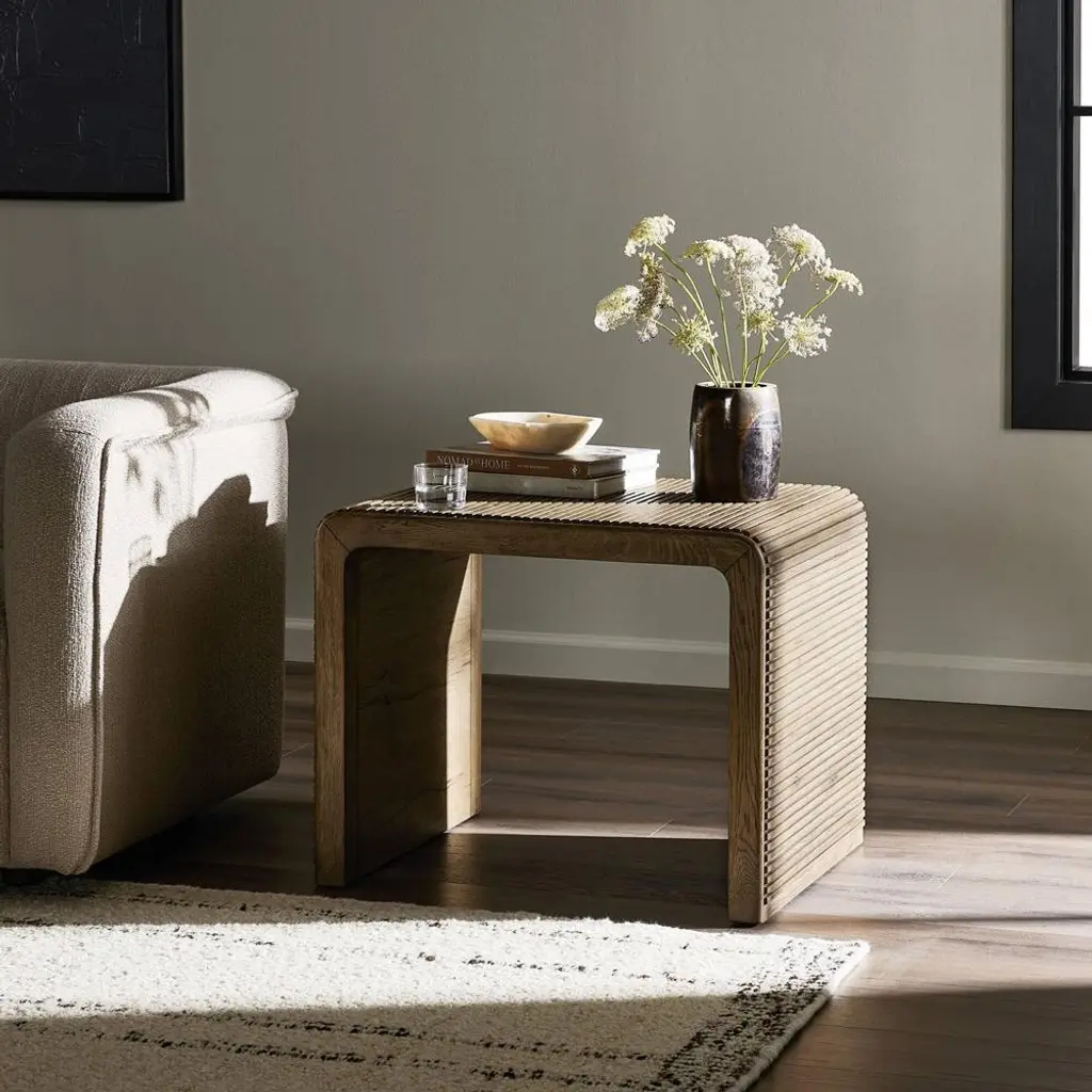 Lana Rustic Lodge Grey Oak Wood Rectangular End Table