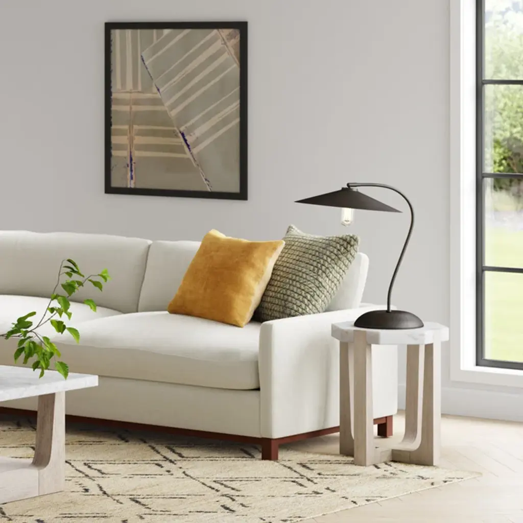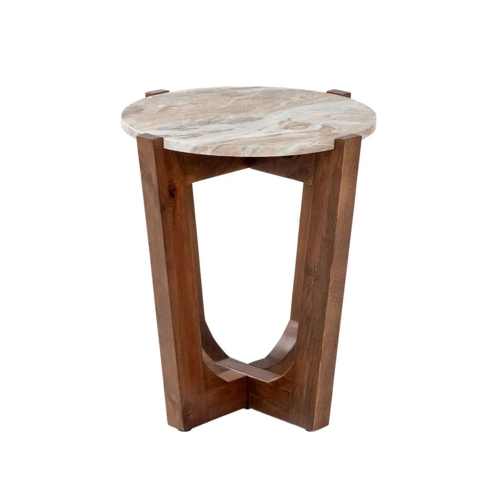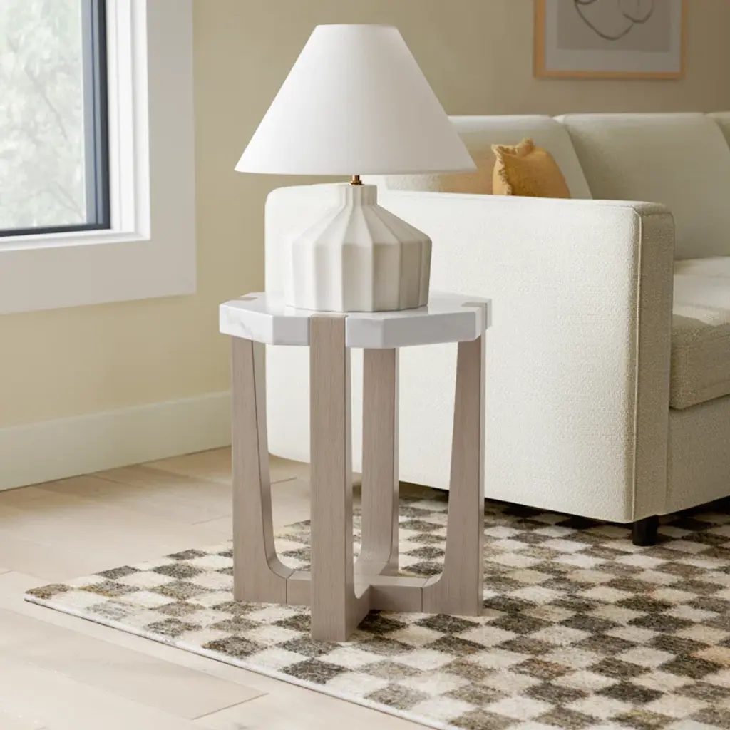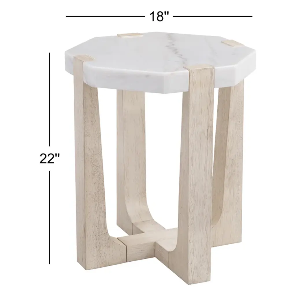 This end table shows off a sleek, modern mixed-material design. The top is made of genuine white marble with gray veining, perfect for an accent lamp. Solid ash wood creates a stable base with a sturdy X-shaped construction. Consider a pair to frame your sofa or headboard, and check out the matching collection for a cohesive look.