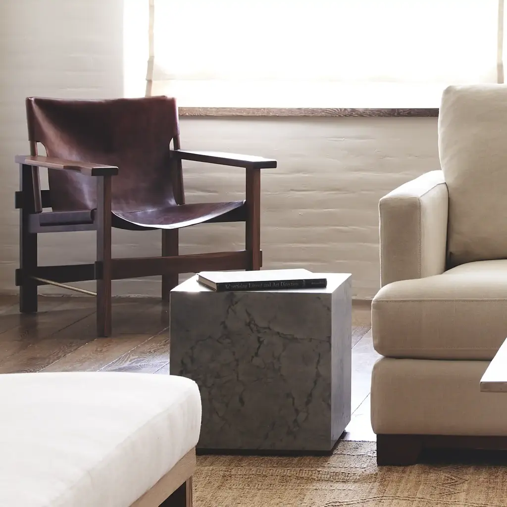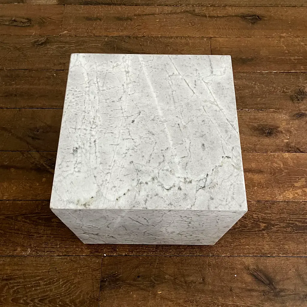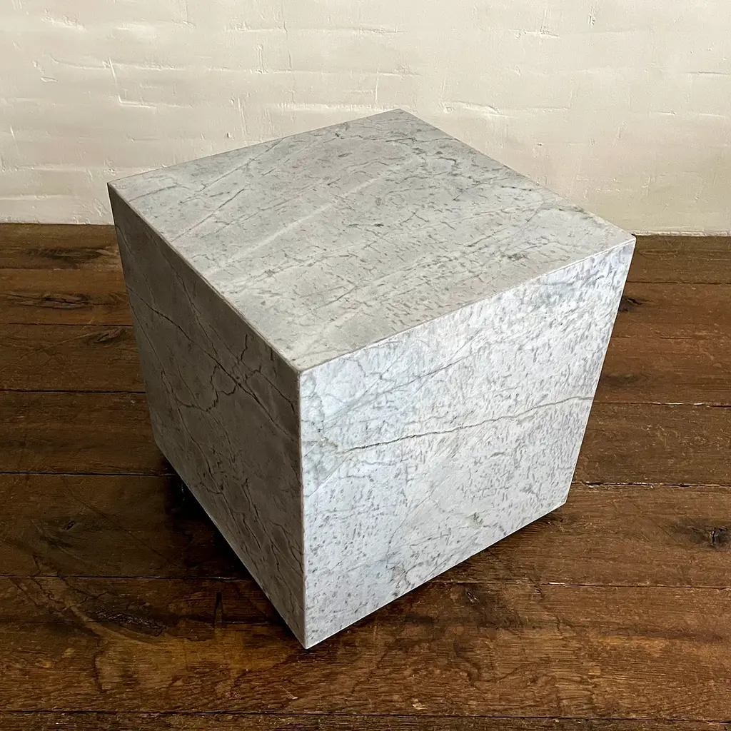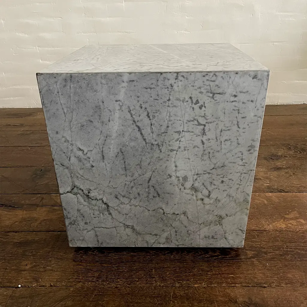 A solid blue-grey marble cube forms a multi-functional design object for use as a side table, cocktail table or decorative pedestal. These are floor samples and have some minor chips to the edges - and are priced as such. 2 are available now for local pickup and delivery.