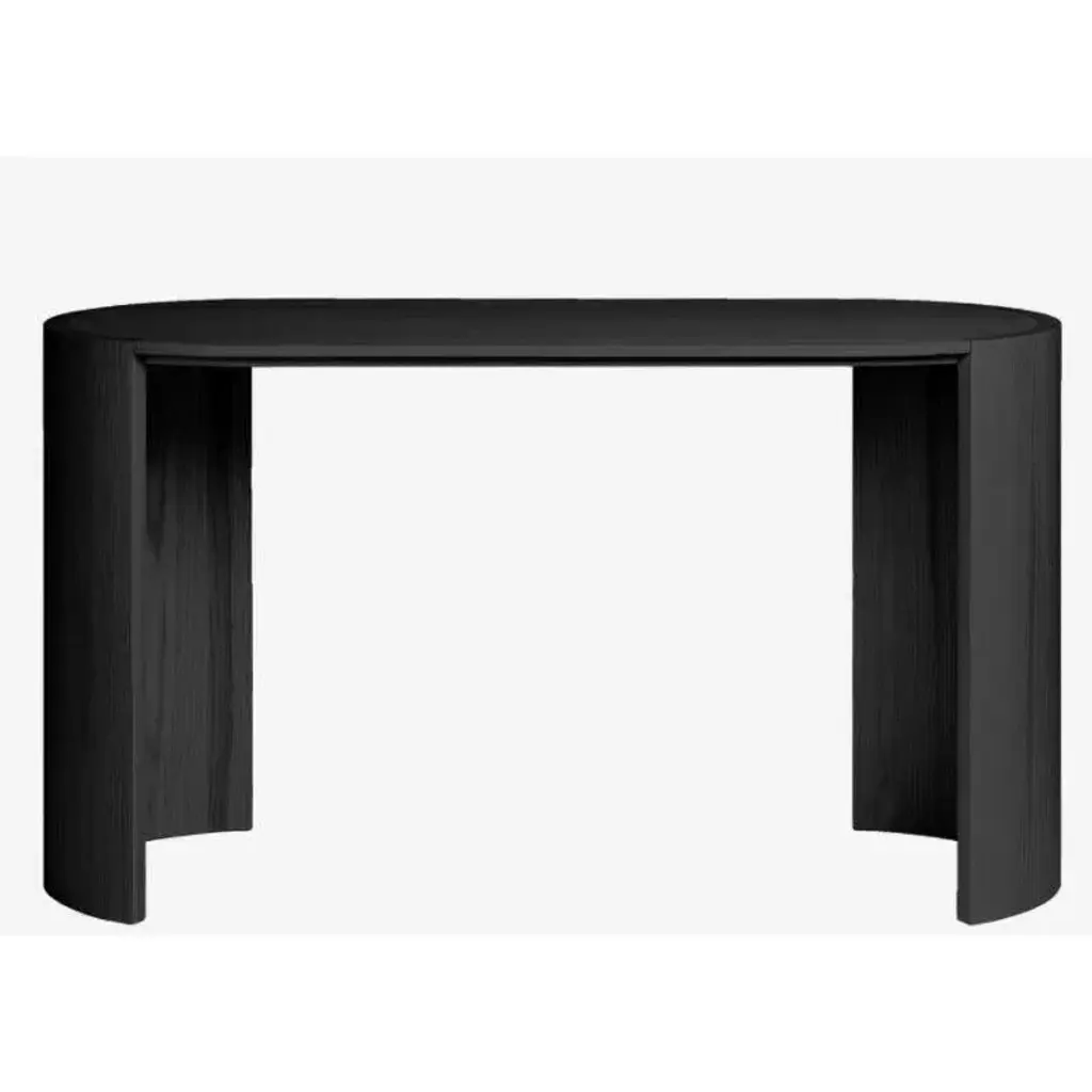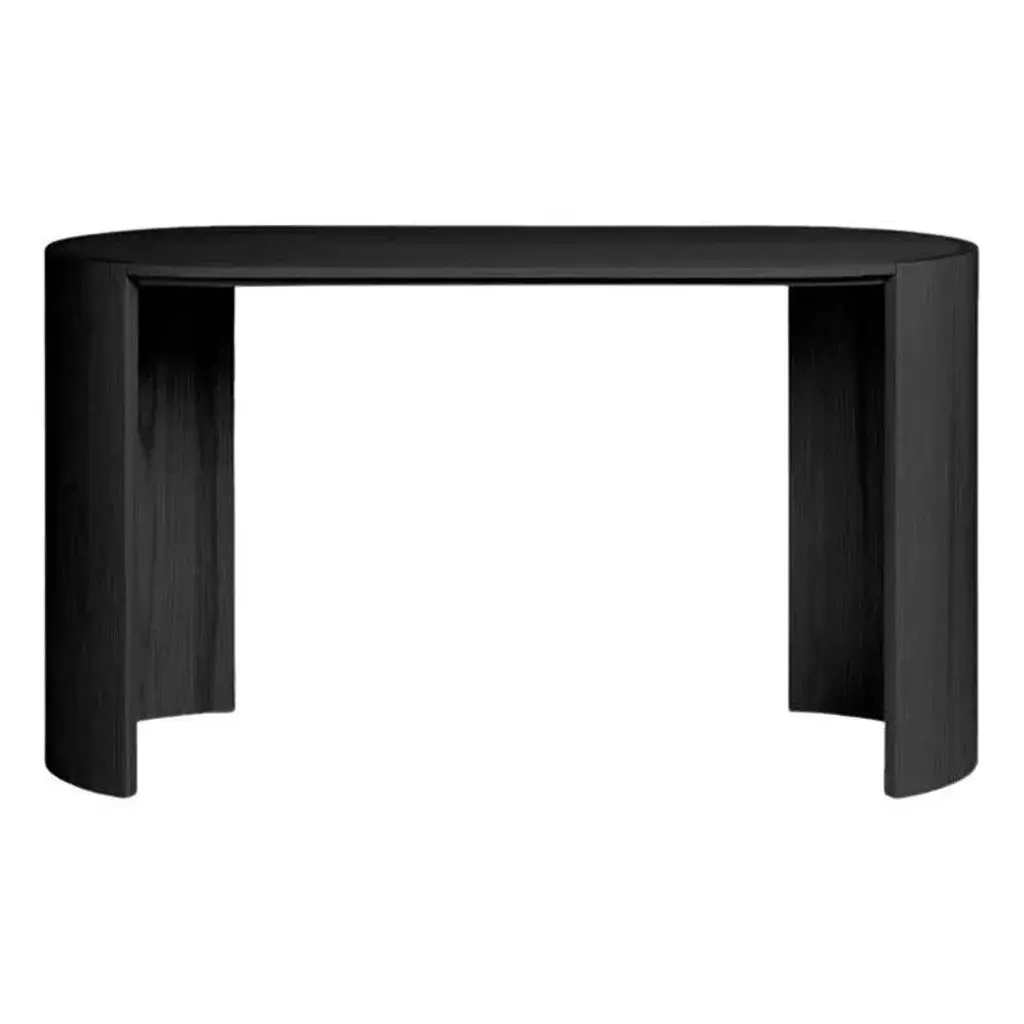 Large, airisto work desk, stained black by made by choice with joanna laajisto dimensions: w 160cm, d 55cm, h 74 cm materials: solid ash finishes: natural ash / painted black also available separately: natural ash, small, medium & custom order the airisto collection’s furnishings are multifunctional – they can be used as a side table, stool and a bench. The natural ash accents the beautiful features of the wood. In addition to the light wood, the other colour option is stained black, which highlights the shape of the product, representative to laajisto’s work. ”a good product has to fit in different environments from the modern and minimalist to rich and classical,” explains laajisto. The simple and modest design language of the airisto furniture emphasizes the asymmetric shape of the foot structure.