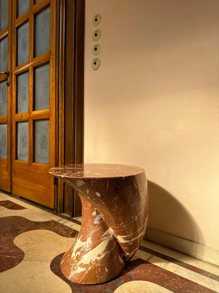 Large Departed Marble Side Table by Studio TOOJDesigned by Johan WilénDimensions: D 41 x H 52 cm.Materials: Soft-honed Cipollino marble.Introducing "DEPARTED" by Johan Wilén, a side table that embodies timeless elegance and understated sophistication. Crafted from exquisite marble and designed with Johan Wilén's signature style, it boasts simple yet striking lines that elevate any space with effortless grace. Hand-finished by skilled artisans in Italy, each table is meticulously crafted to perfection, showcasing the soft honed finish that accentuates the natural beauty of the stone. Available in various dimensions and customizable with a choice of stones.Founded in Stockholm, at Studio TOOJ, we are captivated by the allure of restrained beauty. The designers we proudly represent have a common denominator: quietly sophisticated, with a loud obsession with nuanced layers of details. With a commitment to sustainability and ethical production methods, we are here to bring you pieces that are not only beautifully crafted but also built to last.
