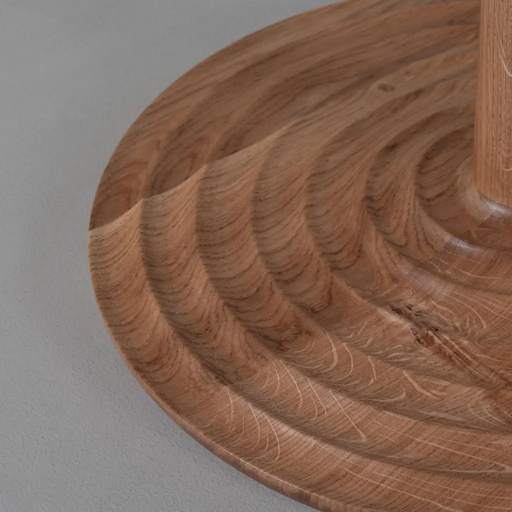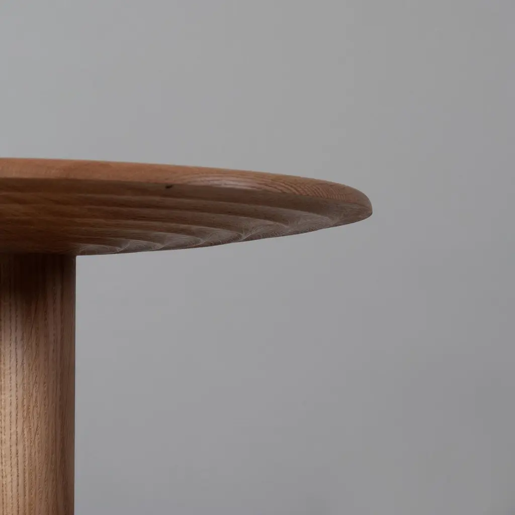 Beautifully hand-turned and handcrafted large version of our English oak rippled side table. The underside of the top surface reflects the rippled scoop base.This is a bespoke piece of fine quality, handmade in London by our craftsman using solid English oak timber. Other timbers are available upon request.We design bold and distinctive pieces of furniture – our main objective is combining the design alongside the natural beauty and properties of the raw materials.These timbers and materials are very carefully chosen for each specific design - maintaining our focus on the benefits, visual impact and strengths of what we use. By utilising these wonderful and naturally occurring features with our contemporary designs we will continue creating some very distinct, tactile and idiosyncratic pieces.These are all completely handmade, in very small numbers, by our skilled craftspeople in England.